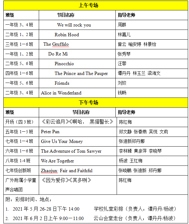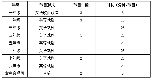 2.节目参与人员:1—8年级学生, 广外附属小学童声合唱团
