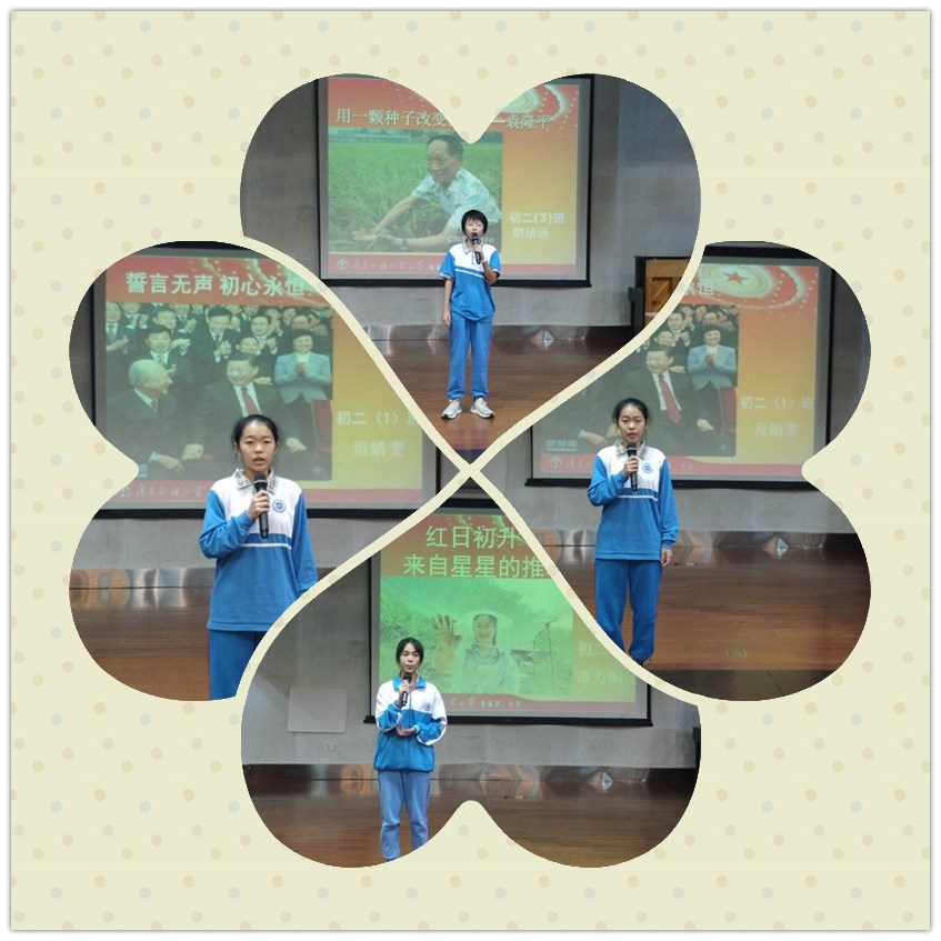 在初赛的活动时间,各班班主任组织学生全部上台演讲,选拔优秀选手参加年级决赛。最终,评选出八名学生参加最终决赛。