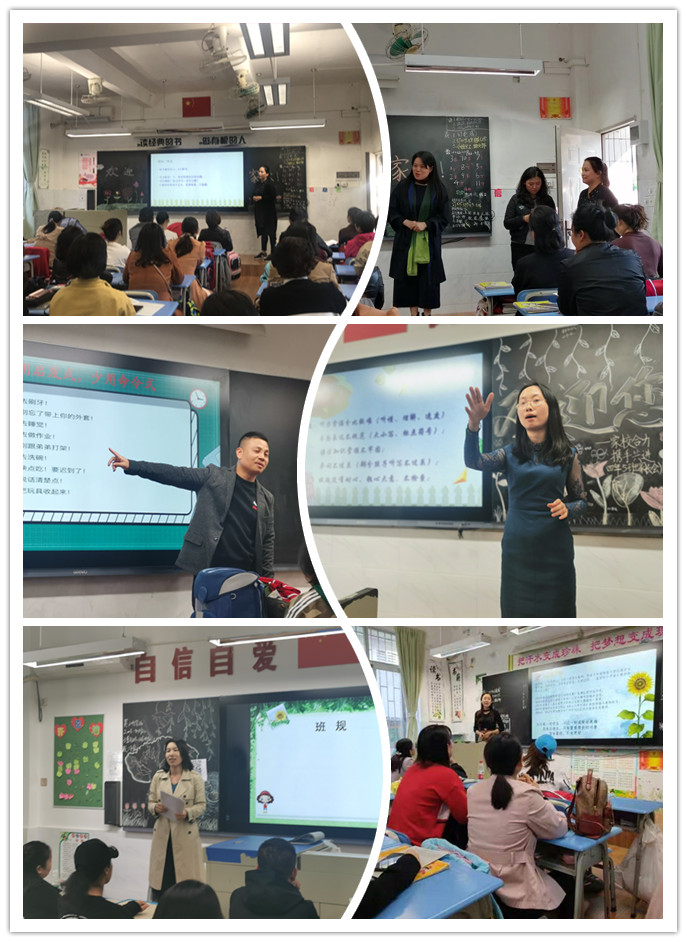 会议第二个议程是分班家长会。各班以不同的形式向家长们全面汇报了老师们的教育实践、分班半个学期来孩子们在校学习生活情况。各科老师都对本学科的学习状况进行了分析,对家长提出了可行性建议。