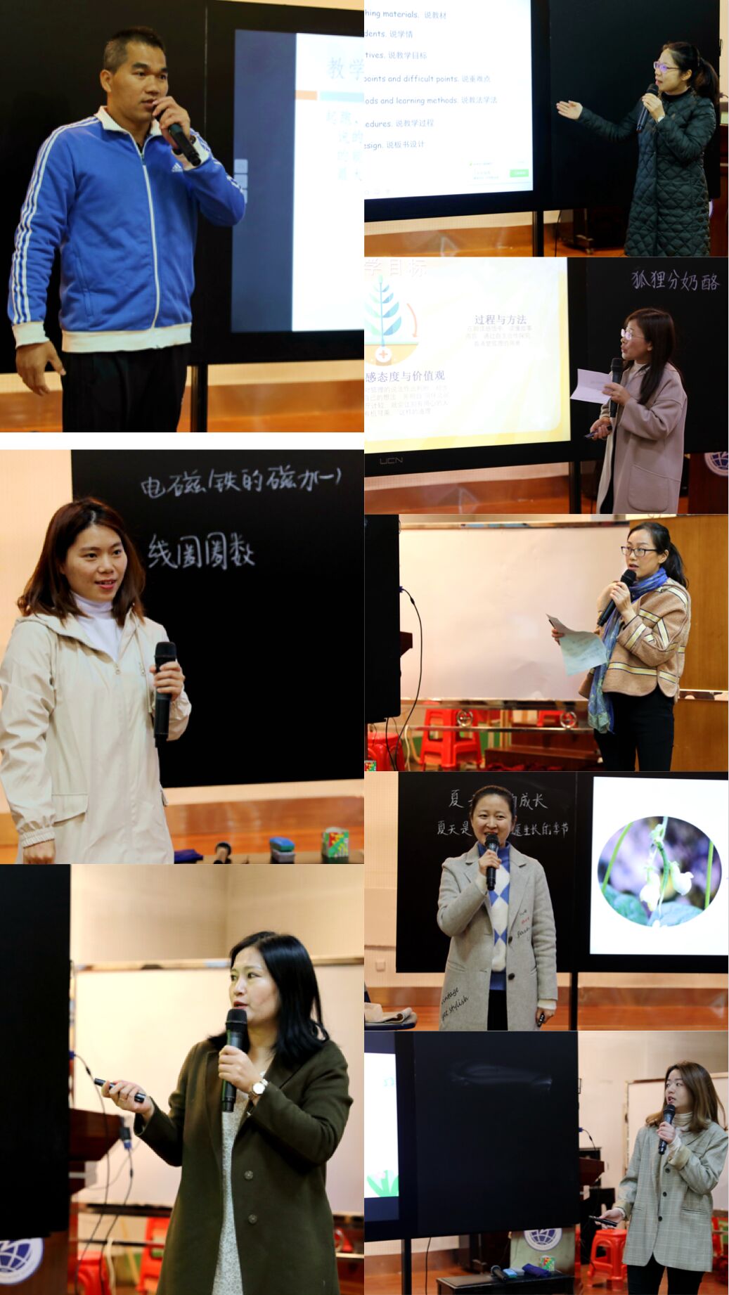 12月6日,说课比赛刚落下帷幕,我们的上课比赛又在云山礼堂擂响了战鼓。参赛老师们个个摩拳擦掌,跃跃欲试。在短短40分钟里,参赛老师们思路清晰,视野独特,他们充分借助教学媒介,调动学生的积极性,力求体现“知识的接受不仅是一个认识的过程,更是一个情感体验、感悟的过程”。语、数、外、音、体、美,外加科学,七大学科,虽风格各异,却同样精彩纷呈,给观摩活动的教师们留下了深刻的印象。