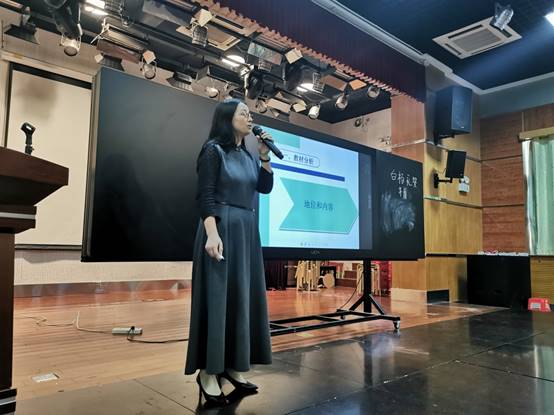 接着,5名参赛老师按顺序依次上台进行说课,在规定的10分钟内,分别从教材分析、学情分析、教学目标、教学重难点、教学过程、板书设计、作业布置等方面阐述自己的教学设计。他们慷慨激昂,激情澎湃,无论是说课稿的撰写,PPT演示的制作,还是答辩的环节,都充分展现了教师个人的风采和课堂的魅力,给评委和在场的老师留下了深刻的印象。
