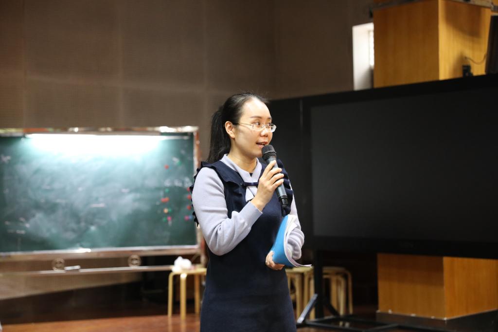 接着,谭丹丹老师对我校的英语课程设置进行了介绍,重点介绍了我校的特色课程——英语戏剧课。随后,广东省英语教研员王琳珊老师进行了主题为《基于活动观、指向核心素养的教学目标确定》的讲座。王老师深度剖析了新课程标准的内涵,同时阐释了如何制定教学目标才能真正落实英语学科核心素养。短短一个小时的讲座给我校老师们带来了醍醐灌顶之感。