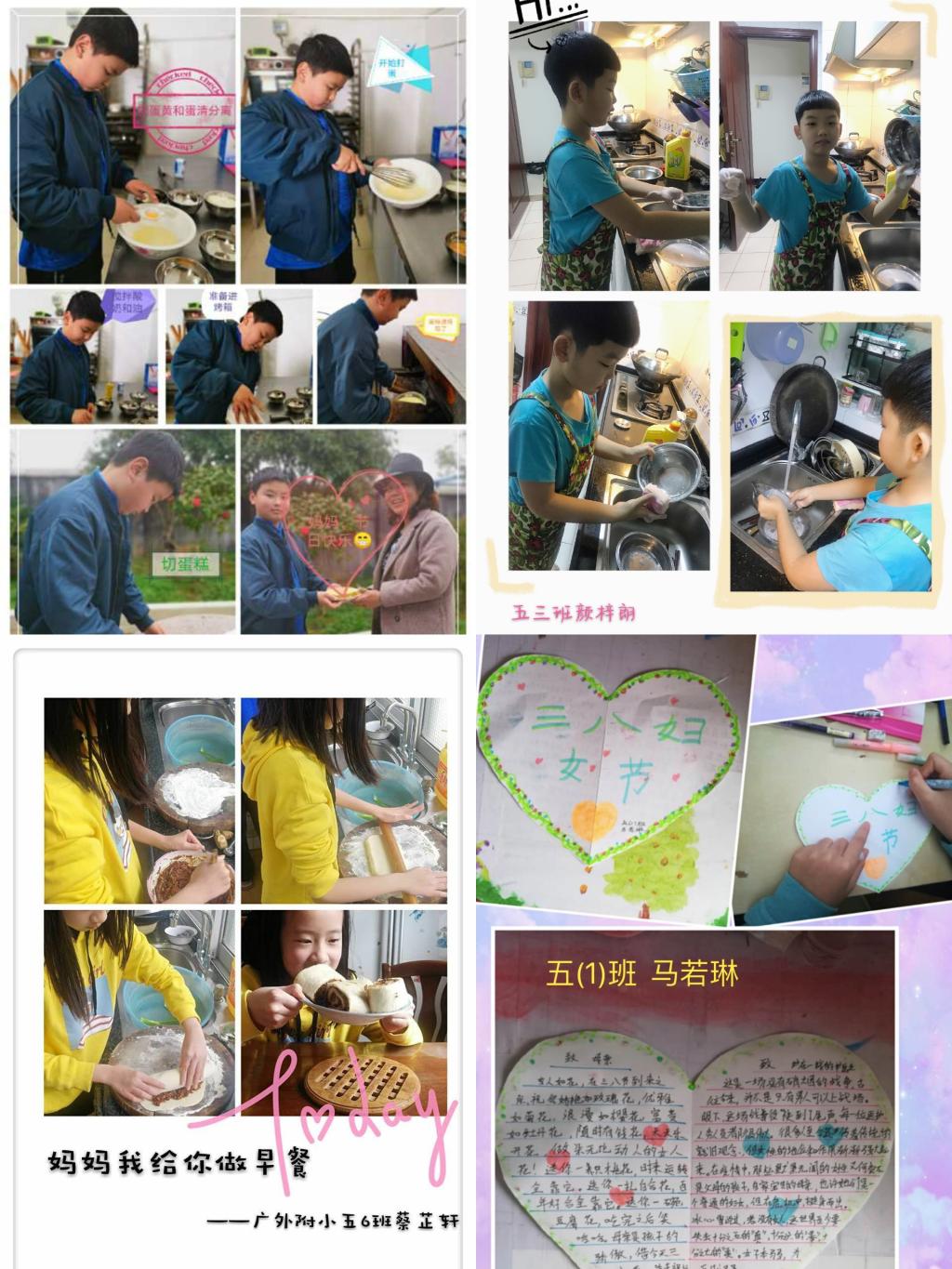 五、六年级同学懂得了长辈的辛苦,积极承担家务活,用实际行动表达对他们的深深的感激和祝福!