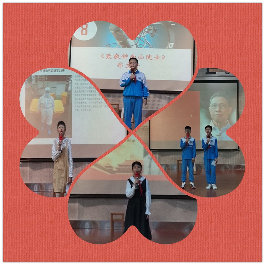 本网讯 11月2日上午,初二年级全体师生在学校礼堂举办了题为“弘扬爱国主义、致敬抗疫英雄”的演讲比赛。本次比赛由学生处策划筹备。语文科组吴冠仪老师、徐润华老师、吴美茜老师担任评委。李丽娜老师、许穗祺老师担任现场点评嘉宾。