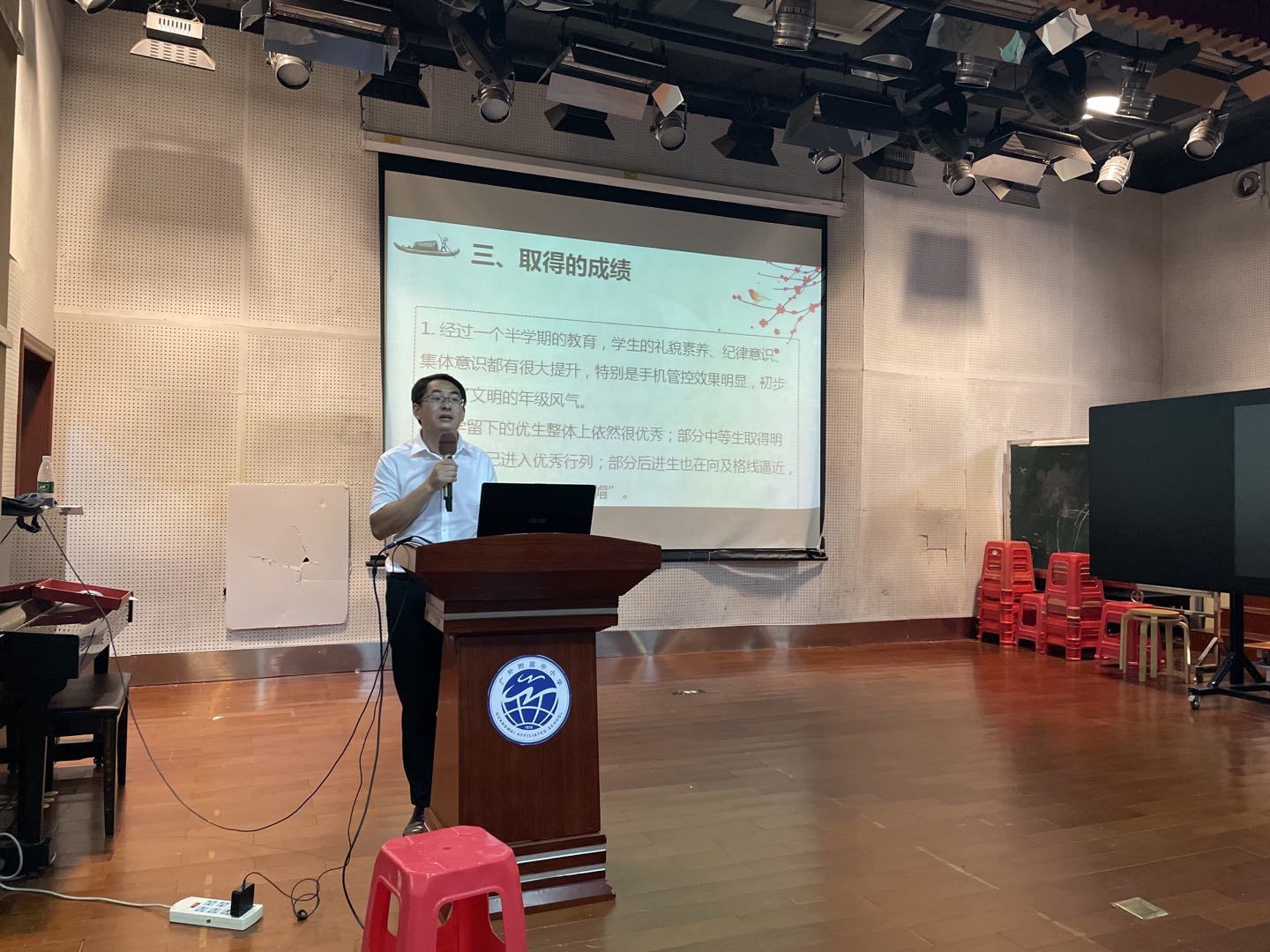 接下来,靳宝玉级长就年级德育和教学工作、学生的进步和不足两大方面对年级情况作了细致的汇报与分析。靳级长认为家校沟通能形成一种合力,他希望家长能多了解孩子的情况,积极支持、配合学校的工作,做一个智慧型家长。虽然初一的工作复杂而又辛苦,但是靳级长向家长承诺,初一年级全体老师定会继续团结一致,恪尽职守,把工作做得更好!