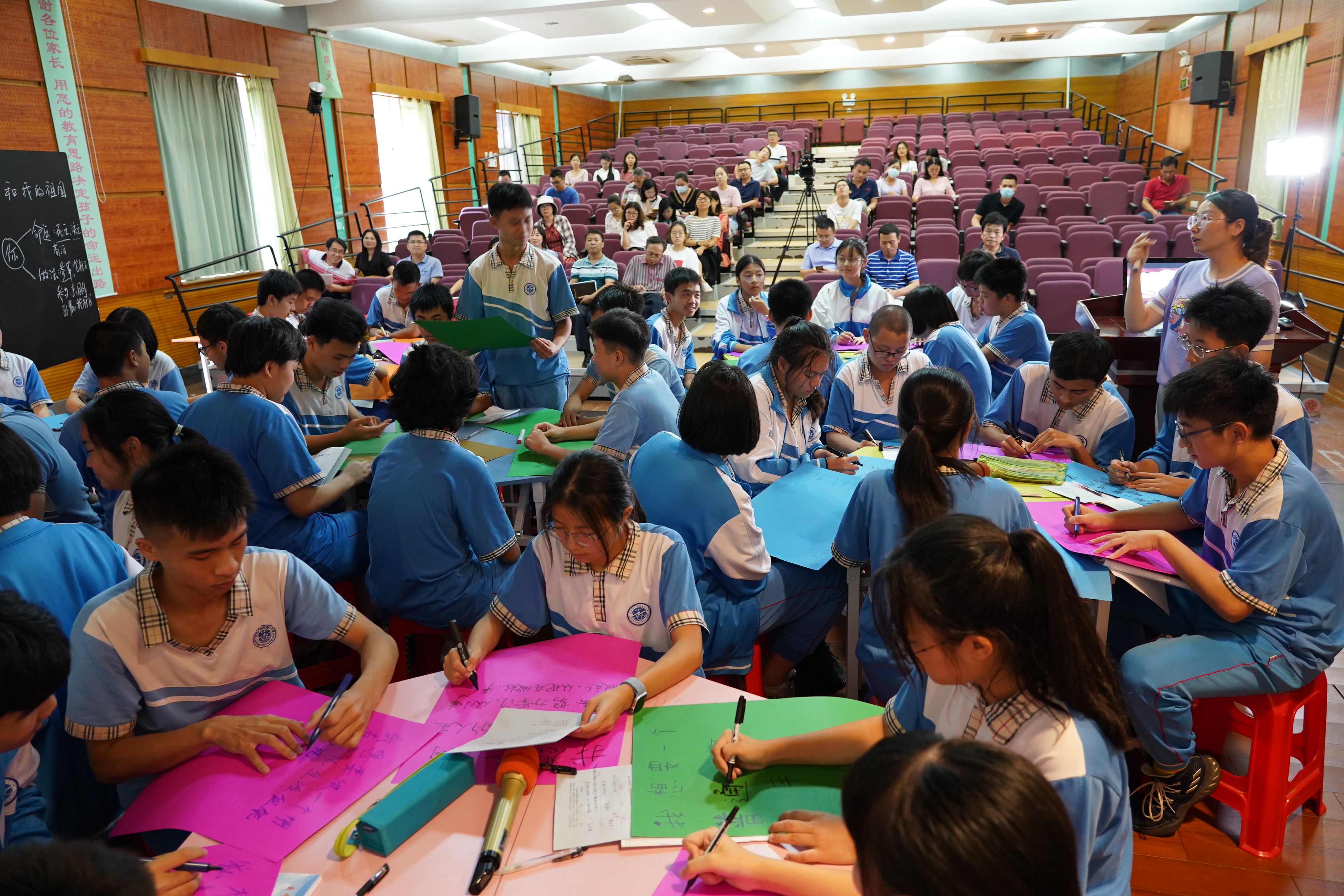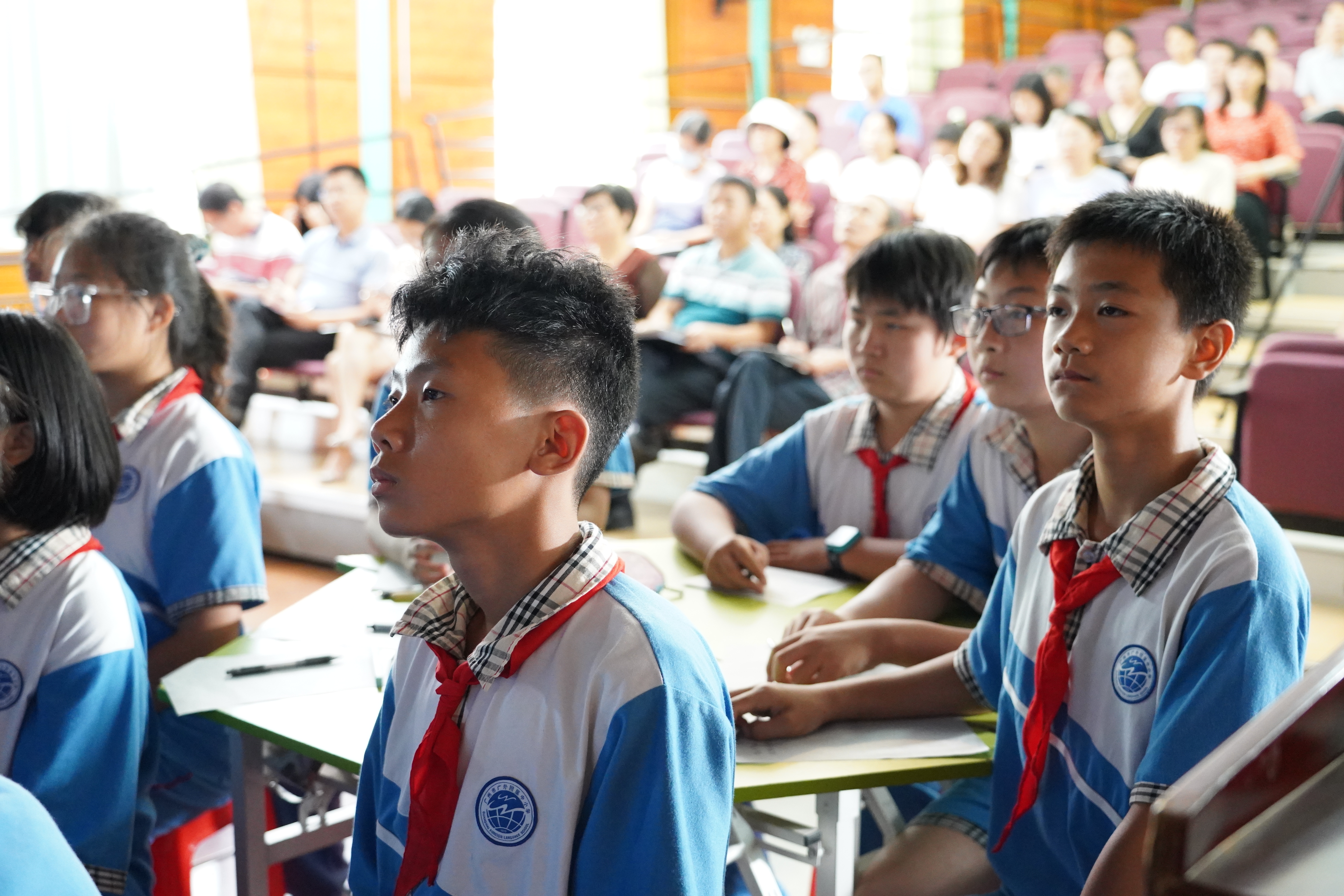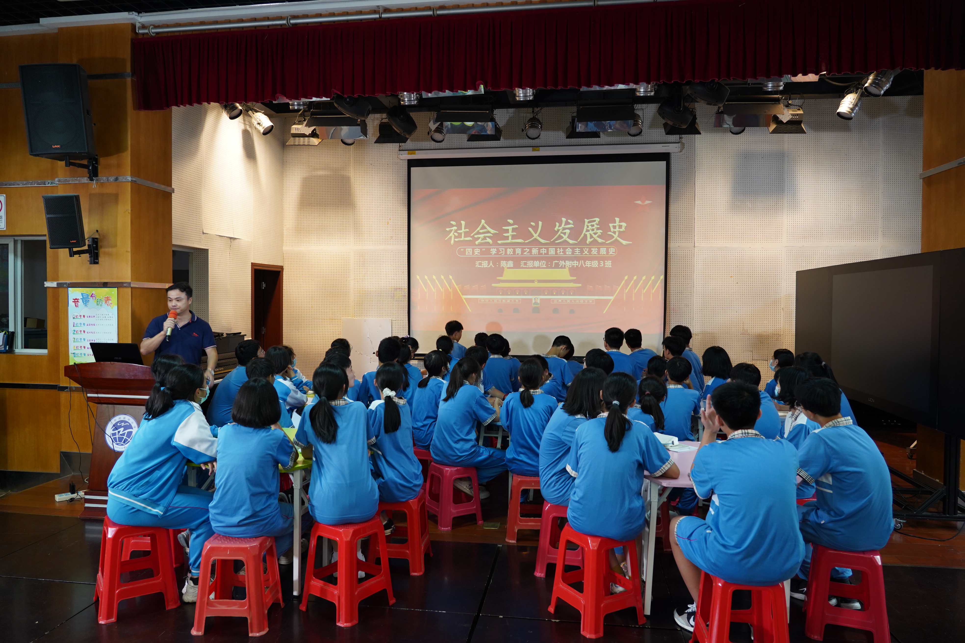 为迎接中国共产党成立一百周年,在老师和同学们中掀起学习党史、新中国史、改革开放史、社会主义发展史“四史”的学习热潮,5月25日下午,由广外附中举办的第七届主题班会大赛决赛在云山礼堂举行。吴玉爱校长、涂筱辉书记、袁宇迪副校长到场参加。