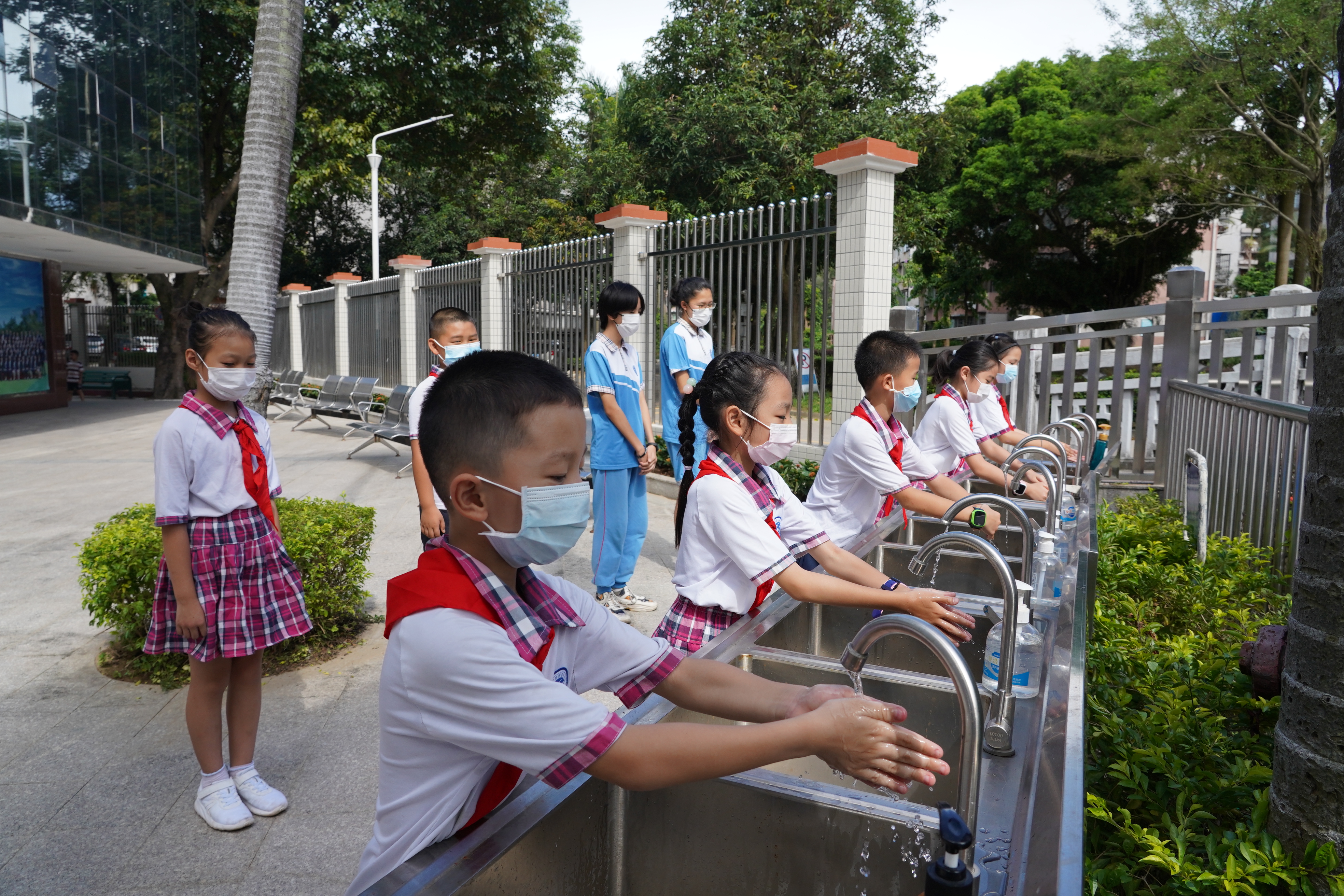 现场模拟2:学生进校后用“七步洗手法”洗手。