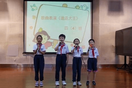 首先,四(4)班同学给大家带来了歌曲《邋遢大王》,瞬间,让同学们明白了,不良的习惯将会产生多么不好的影响。