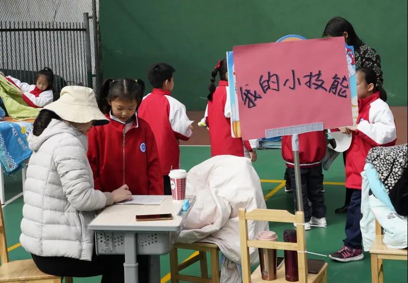 “我的小技能”,是对学生动手能力和基本生活技能的考察,本次活动要求学生在2分钟时间内,完成叠被子的技能展示。