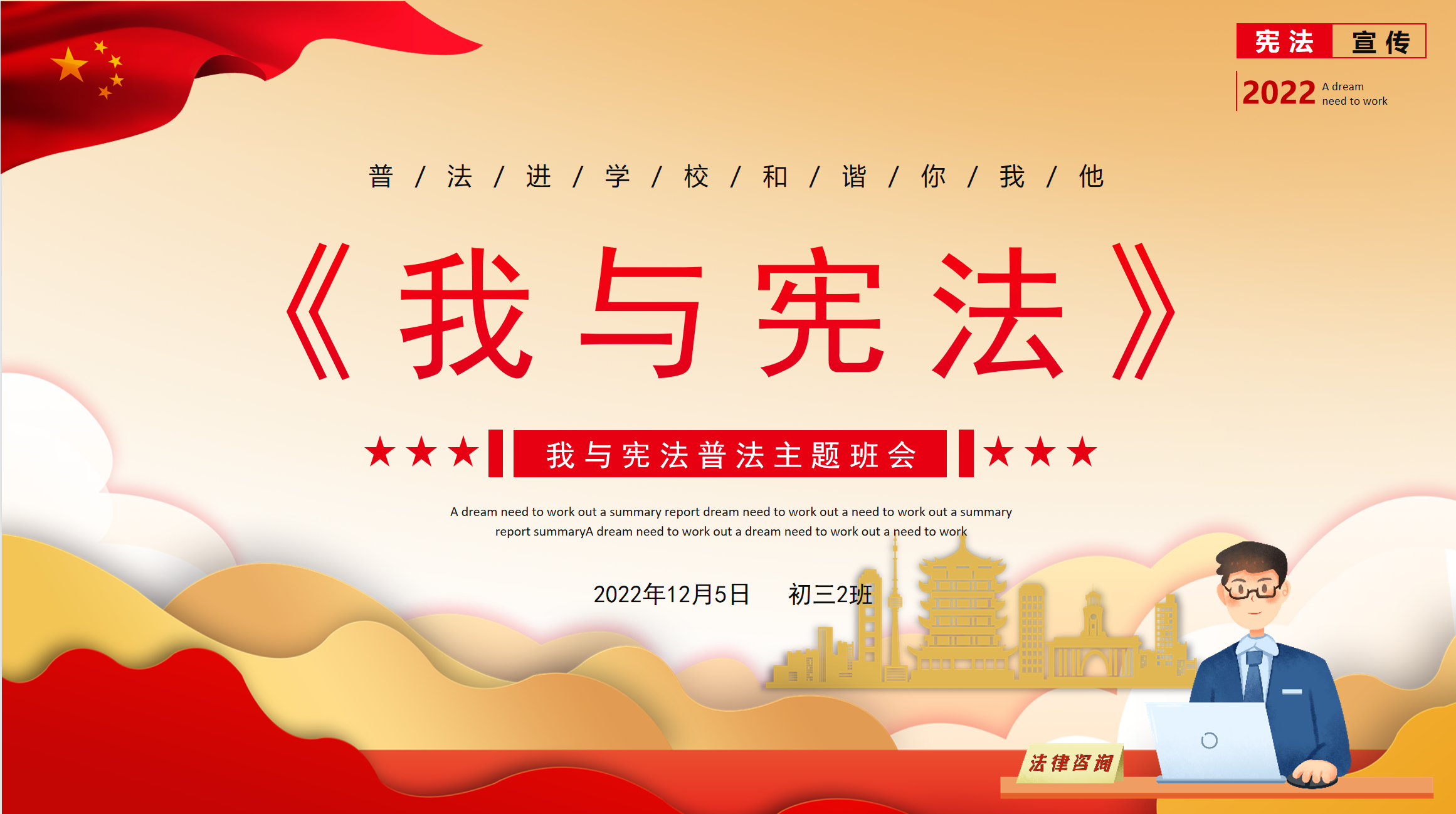 12月4日,是我国第九个“国家宪法日”,为了大力弘扬法制精神,进一步增强学生的法律意识和法治观念,深入开展普法教育,营造和谐校园氛围。我校于12月5日上午开展了学习宪法活动,各班线上召开“学宪法 讲宪法”主题班会。