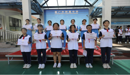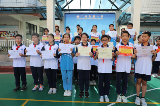 在颁奖环节,同学们从方建军校长、朱传兵副书记及黄秋敏副校长手里接过奖状,喜悦之情溢于言表,小小的奖状承载着学校全体教师殷切的鼓励和期盼。