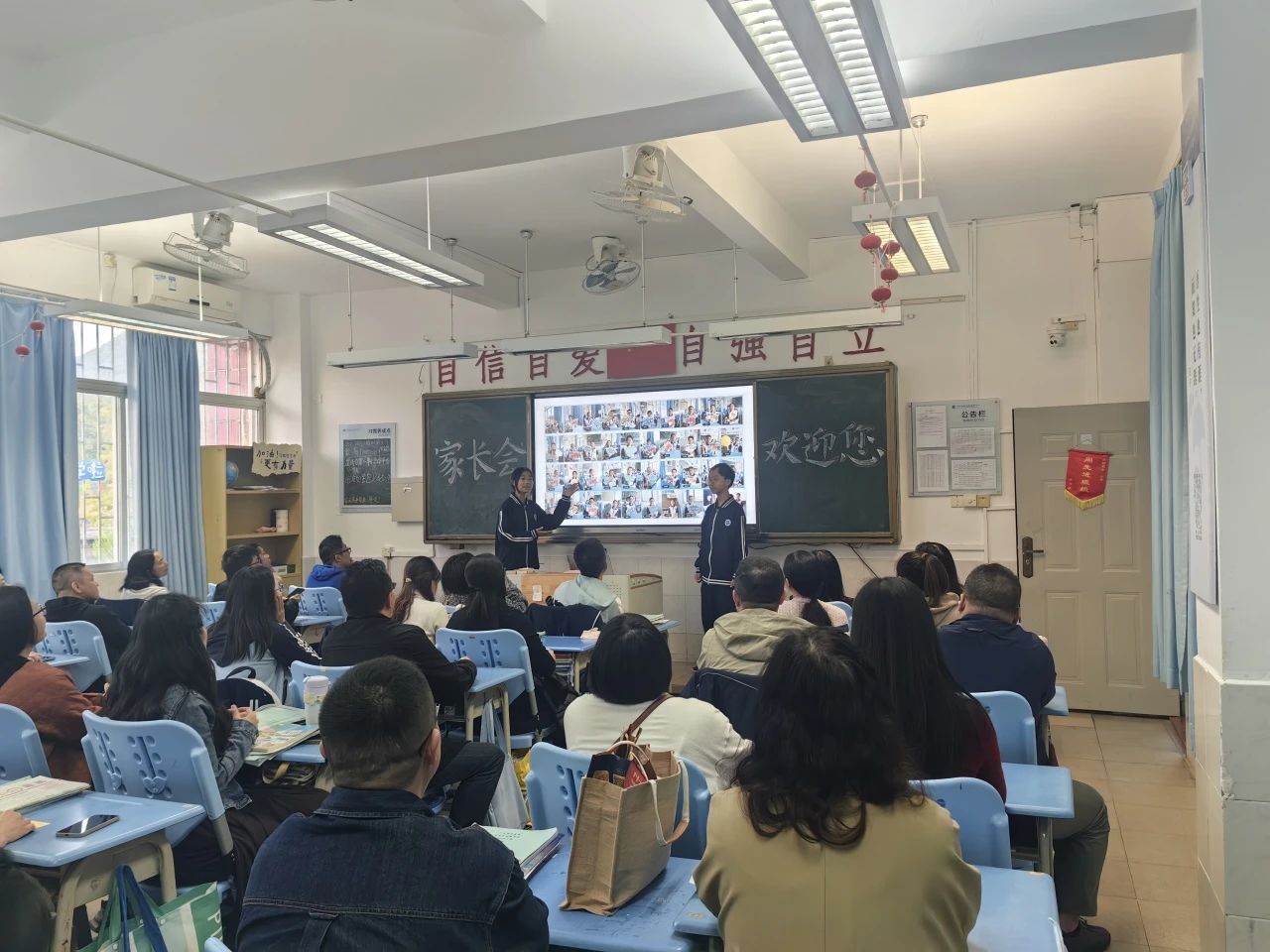 年段会议结束后,家长们移步到各班级教室。班级家长会上,学生落落大方的主持,班主任们就开学以来班级各项工作的开展情况、班级管理、学生近期的表现向家长们进行介绍与分享,分析了孩子们存在的问题,明确了今后学校教育和家庭教育的重点。学科教师分别从期中训练情况、中考形势、学习经验进行了分析。让家长明确初中阶段各学科学习的要求和目标,同时了解到孩子当前知识的薄弱点,并且给出了具体的、有针对性的措施和建议。帮助孩子们顺利地适应从小学到初中的巨大变化。