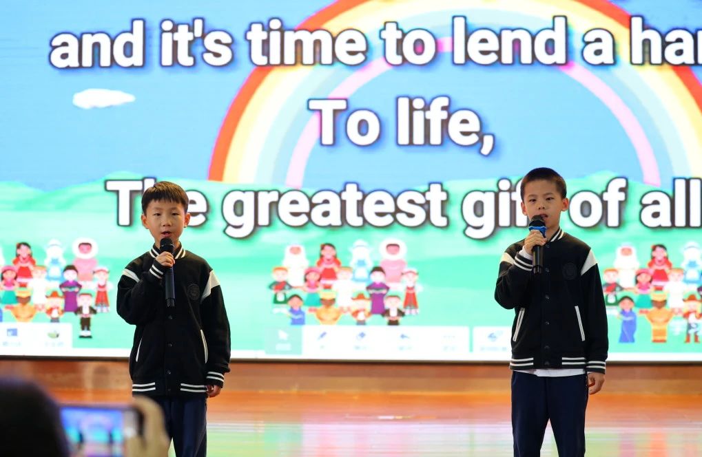二(3)班《Worms fly》, 黄文柯以其独特的音乐风格和深情的演唱,将这首歌曲演绎得感人至深。《A little love + You are my sunshine》,陈逸谦、李芸安、肖一鸣、郑希乔、王若西、刘于瑄六位同学以温暖人心的歌声,将这两首充满爱意的歌曲串联在一起,为观众带来了一场心灵的洗礼。
