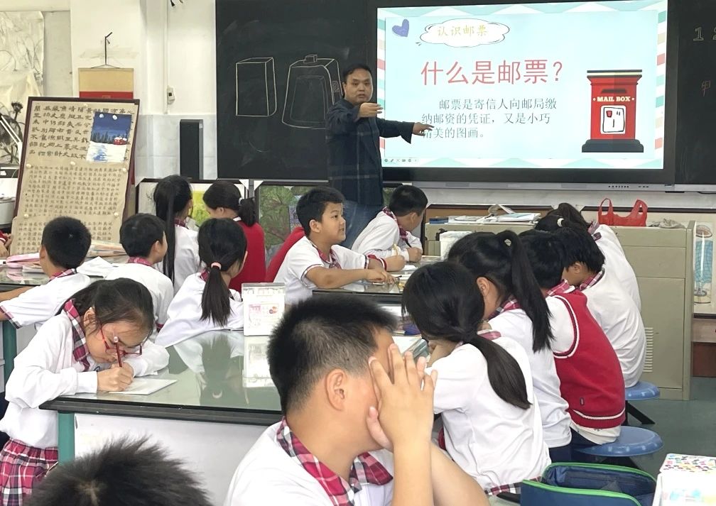 活动伊始,语文老师们化身文化引路人,以邮票为媒介,开启了一场别开生面的文化启蒙之旅。课堂上,同学们在老师的悉心引导下,如同探索宝藏的小探险家,仔细端详各类邮票的图案、文字和色彩。这些小小的邮票,如同神奇的钥匙,为同学们打开了诗歌创作灵感的大门,让他们领悟到方寸之间蕴含的无尽文化内涵与艺术价值。