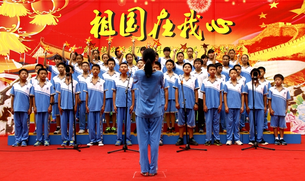 本网讯又是一年秋风送爽时,又是一轮花好月圆日。为庆祝抗战胜利70周年,迎接祖国66华诞,9月30日,我校中学举行“祖国在我心——庆祝抗战胜利70周年暨迎国庆”合唱比赛。悠扬曲调,飘逸舞姿,嘹亮歌声,掌声连连,唱响校园……祖国在我心!