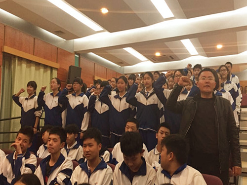 在发言结束后,罗丽萍书记、袁宇迪副校长、陈媛媛副校分别向各班赠送一副倒计时牌,各班领奖代表带领各班庄严宣誓,表达了对中考胜利的决心和勇气。主会场活动结束后,学生们纷纷到礼堂外签名、拍照。