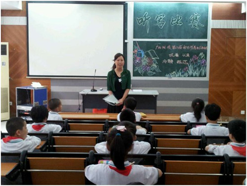 比赛先进行班级选拔,来自五个班的30名学生进入决赛。听写内容为本年级学过的易混易错词语、四字词语等。经过激烈的角逐、任课老师们严格的评判,许欣玥等六名同学荣获冠军。