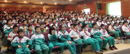 本网讯3月19日下午,肖慧兰老师在校礼堂给四年级全体同学举行了一场别开生面的《父与子》导读交流会。
