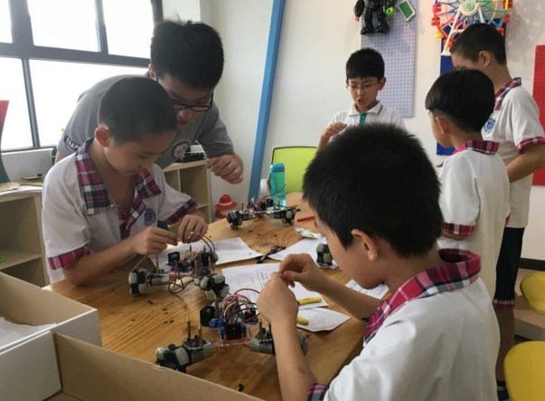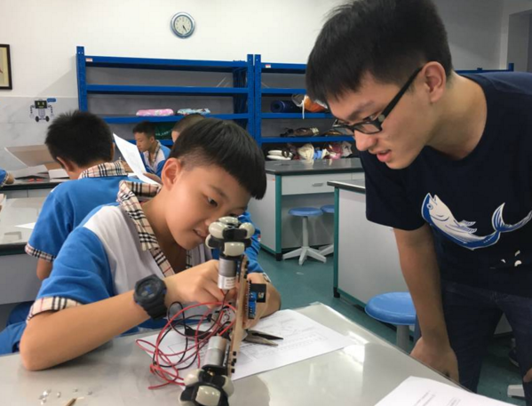 同学们一步一步让零散的器材变成酷炫的小车