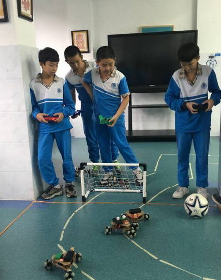 科技班的同学们,经过分组组成A、B、C...多支队伍,每两队的队员要求在模拟的足球场地上遥控各方的机器人小车,在规定的时间内,把“足球”推进对方球门得分最多的一方胜出。铺垫到此为止,下面我们一起来围观小选手们的精彩表现吧~