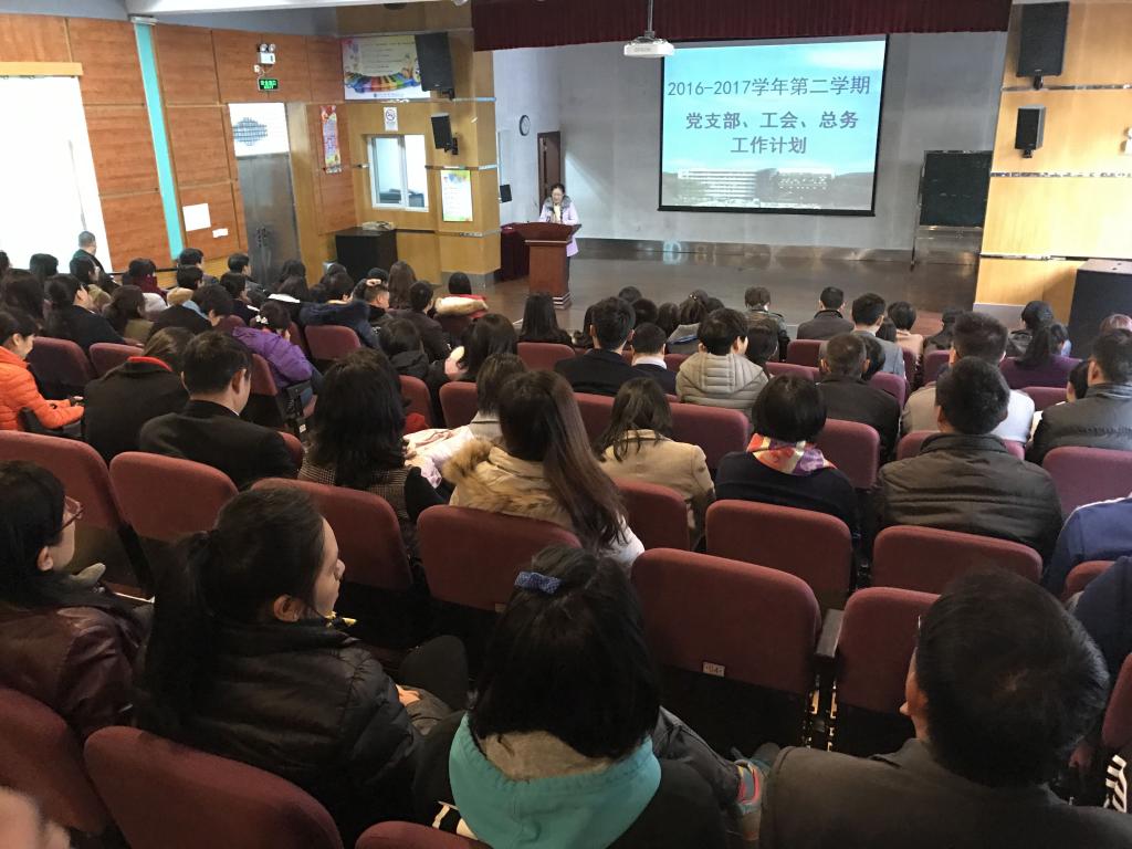 会上,吴玉爱校长作题为《求实创新抓质量,再上台阶创品牌》工作布置讲话,他以“跑”作为2016年关键字,“沉”作为2017年关键字,分别从教育教学质量、办学特色、教师专业素养、办学条件做出总结,并以职业素养为基本、课程为教学竞争力、课堂为教学核心等三方面对全体教师提出要求与期望。吴校长希望新的一年,学校领导公平公正,做好表率;教师坚守底线,戒骄戒躁;全面提升学校口碑。接着罗丽萍书记根据学校工作思路,结合党支部工会、总务工作重点,从关心教职工身心健康、做好学校教育和教学保障为出发点,制定本学期工作计划。陈又新校长助理代表校办、财务总结了2016年工作中存在的不足,并从人事、宣传、接待、招生招聘、图书、档案等解读新学期工作计划,并对校办部门提出全面、细致、创新等新要求。外语教研室汪蓉主任以旨在突出学校英语特色,完善教材体系、课程体系、活动体系等方面解读新学期中、小学外语教学教研工作重点。并从反思、自我提升、课堂利用、教研培训、课题研究等角度对教师提出要求和建议。艺体主任赖小江根据学校艺体特色,以留课堂为中心、重视教研教改、探索教学新手段、加强教师研修等方面制定新学期工作计划,并在艺体项目、艺体团队建设上面提出要求。