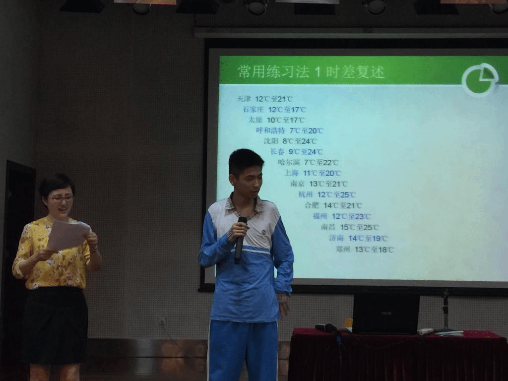 最后,有两位同学饶有兴趣地接受了刘教授的邀请进行简单的同传潜质测试,通过测试也告诉同学们未来有志于做一名同传译员的一些有效的练习方法。这次讲座开拓了同学们的视野、激发了同学们对语言学习的信心和动力,也引发了同学们对未来的职业选择的思考!