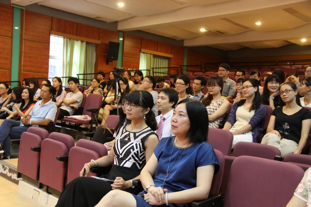 教师们在云山会堂观看了我校宣传片宣传片。吴校长围绕学校今年来“全人教育、培养走向世界的现代人”的办学理念向在座老师介绍,我校以外语特色、活动育人、艺体项目进课堂、科技创新和校本课程五大特色抓手落实学校办学特色。学校抓师资队伍建设,重视教师培训,学校质量逐年稳固上升。随后,陈媛媛副校长代表学校向大家着重介绍了我校外语特色,我校英语教学在遵从国家规定教材的基础上,增加了香港朗文教材的教学应用。外语课时的多层设置,使我校近年来英语成绩、语言水平、教学质量都得到充分保证。学校开展的多项活动支撑学生口语交流展示的能力发展,使学校外语特色成为学校一大品牌象征。