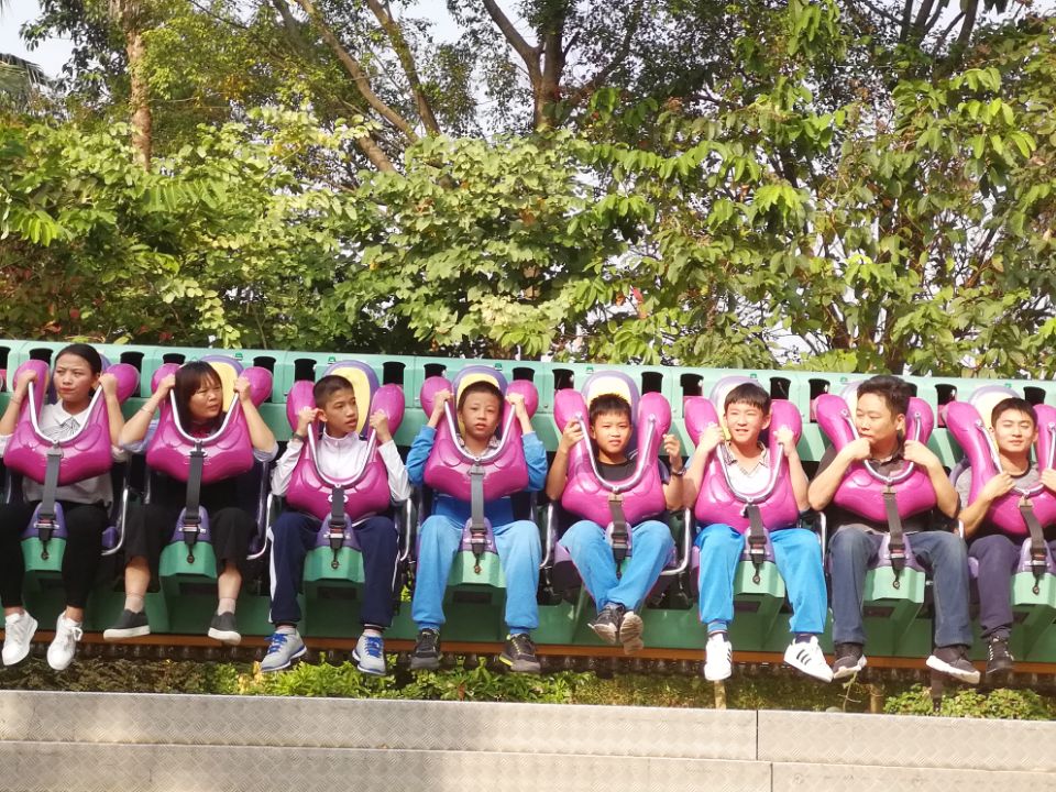 长隆欢乐世界集乘骑游乐、特技剧场、巡游表演、生态休闲、特色餐饮、主题商店、综合服务于一体,拥有游乐设施70余套,是目前全球超大型游乐园。如亚洲第一的顶尖游乐设备:十环过山车、超级大摆锤、摩托过山车与U型滑板,堪称是世界游乐科技史上的杰作,既惊险又有趣,同学们在游戏中挑战自我,放松身心的同时,切身感受到先进科技与创新知识的无限魅力。