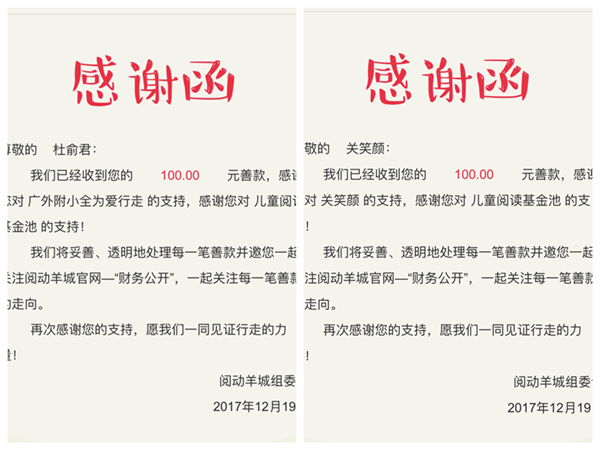 活动三:成功挑战!成功筹款!持续收到同学及家长的捐款。