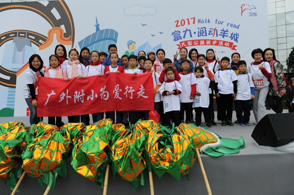 本网讯 12月16日广外附小五年(3)班的老师、学生及家长20多人参加了阅动羊城徒步公益活动。这是一项公益徒步筹款活动,活动是徒步和筹款的双挑战,为了儿童阅读公益基金筹款。