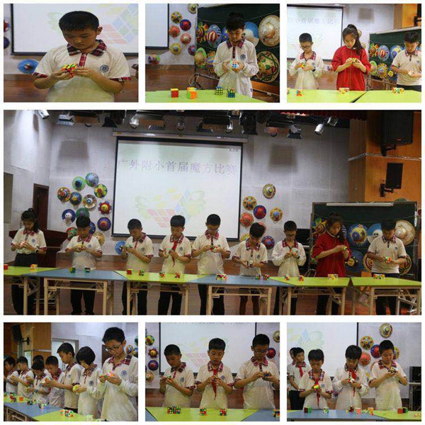 广外附小秉承着锻炼学生手脑并用能力、培养空间想象力及手指灵活能力的原则,以促进魔方文化的交流、分享和学习,促进和谐的校园文化氛围为目的,开展了一次魔方比赛。