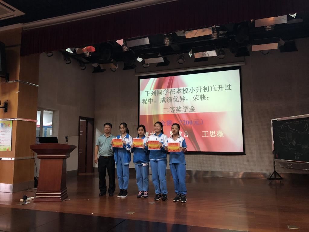 首先,会议表彰了在小升初中获得奖学金的同学以及进步奖和优秀奖的同学。