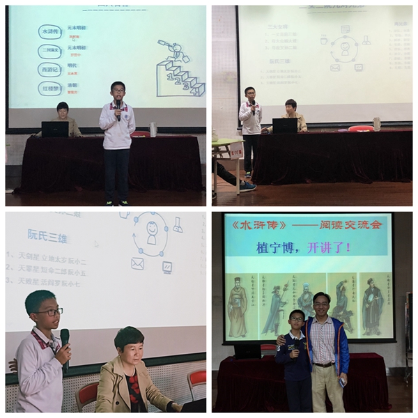 本网讯 《水浒传》是中国四大名著之一,是我国文学史上的经典作品。精彩的故事情节、鲜明的人物个性,犹如一坛醇酒,滋养了一代又一代中国人。为了弘扬中华经典,传承民族文化,让学生们读其文、感其情,我校五年级语文组在范秀红老师的策划带领下,于11月20日下午在云山礼堂隆重举行了“大手牵小手读名著系列之——《水浒传》阅读交流会” 。