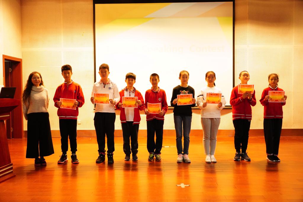 比赛伴随着主持人的开场白隆重拉开帷幕,主持人就比赛规则及评分标准进行了简要说明。此次比赛为命题演讲,选手们或慷慨激昂,或深情低沉,或情感真挚,将青春风采展现得淋漓尽致。经过初赛选拔出来的共计16位优秀选手们,经过激烈角逐,最终由六(1)班陆易思汀、六(3)班徐可益、六(4)班潘一川凭借地道流利的口语,声情并茂的演讲获得了评委老师的一致赞赏,荣获一等奖。最后由评委老师们为获奖选手颁奖,在现场观众热烈的掌声中,此次英语演讲比赛决赛圆满结束。