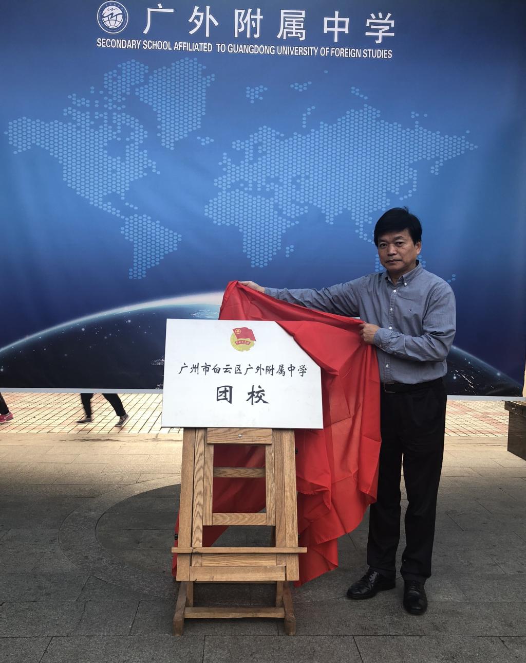 在庄严的国歌声中,活动正式开始。首先,党支部陈又新书记宣读了《关于广州市白云区广外附属中学团校挂牌成立及机构人员设置的文件》。