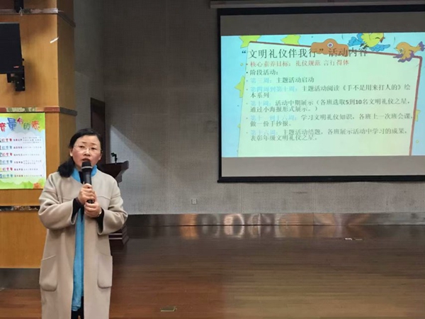 最后,一年级级长李炜星老师对活动进行总结,并介绍本学期“文明礼仪伴我行”的相关活动内容。她告诉孩子们文明礼仪要从小事做起,从身边做起。同时,宣布了年级“最美女生”名单,由郑主任给获奖同学颁发奖状。