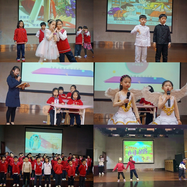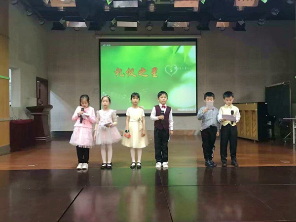 启动仪式前,通过视频展示了上学期礼仪之星的风采,给孩子们树立了榜样。随后,一年级的小主持人们落落大方,串起了一个个精彩的节目。首先由王鑫鑫老师带领学生上台共同演绎,给大家讲述了一个怎样正确使用文明用语的小故事。接下来三班、一班和六班的同学分别用舞蹈、快板和演唱等方式,呈现了文明礼仪在日常生活中的重要性。二班同学带来的《争做文明礼仪小天使》小品剧,更是让同学们了解了校园文明礼仪的方方面面。