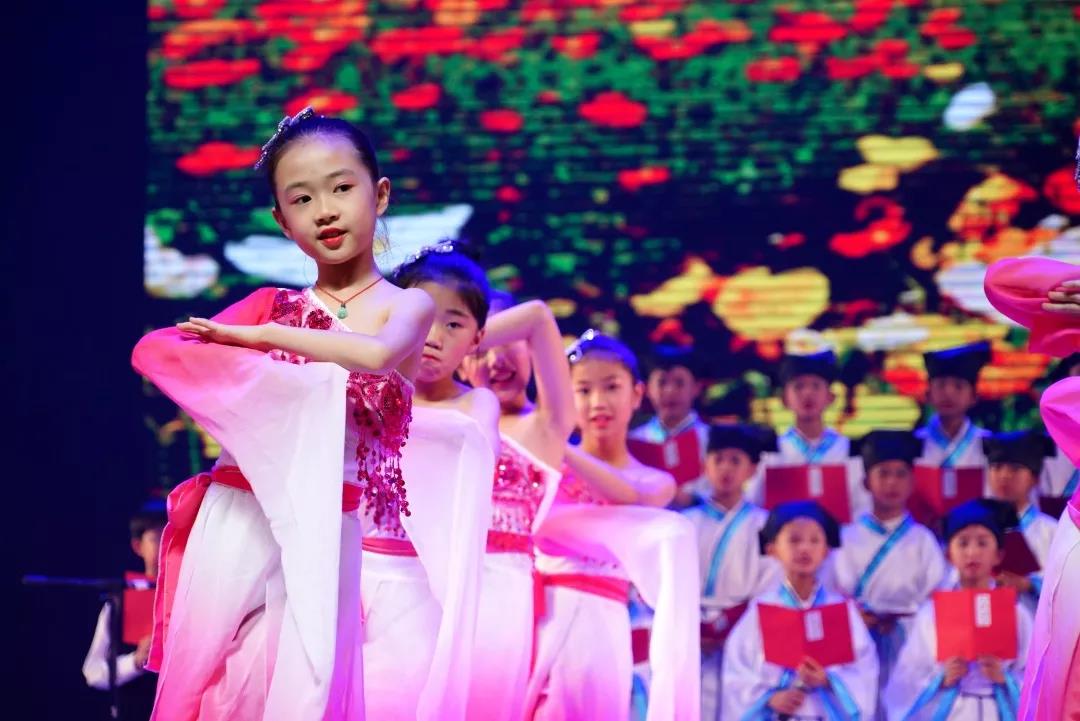 全校一至八年级全体学生悉数登场,表演中,学生们的诵读字正腔圆、有板有眼,在浅吟低唱中演绎了中华经典诗词的独特韵味,让整个会堂充满了传统文化的馨香。