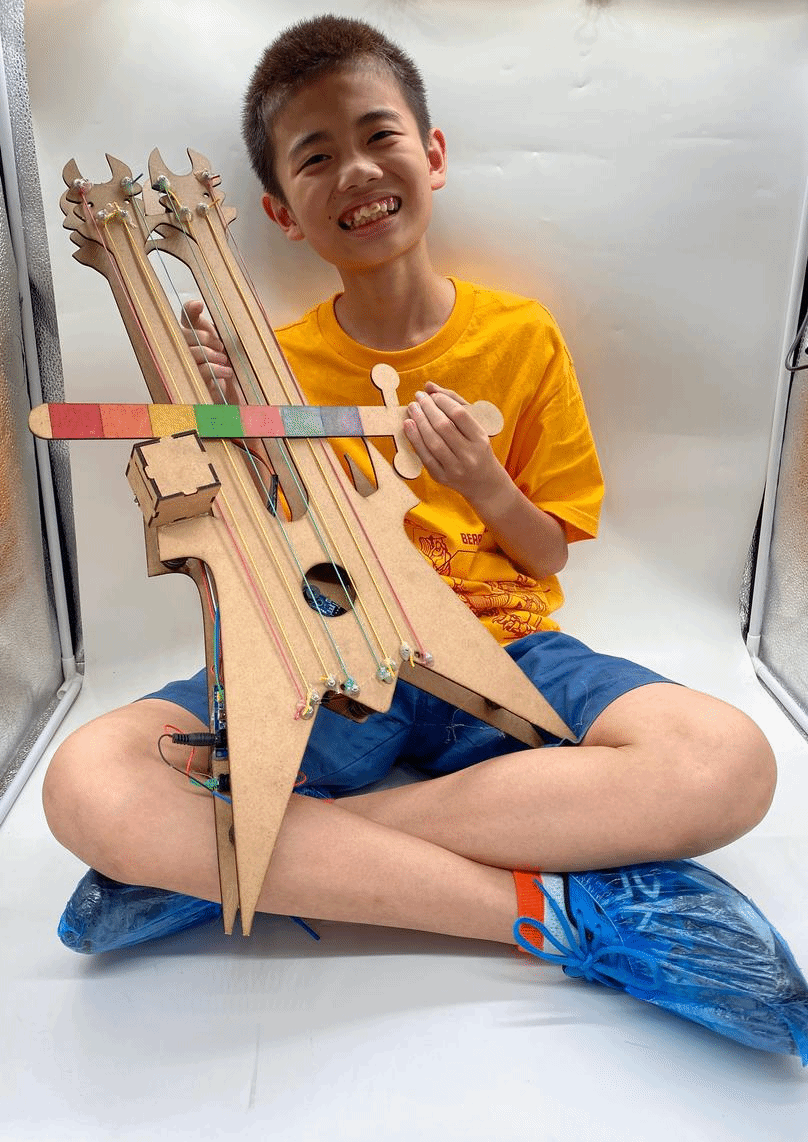 爱创造智能作品限主题个人赛是利用电子传感器件,结合编程,自主制作全新的乐器,或者是将某种乐器用在特殊场景里以体现其独特的作用(比如音乐阶梯鼓励人们多走楼梯);其中发声部分电子元器件数量不得低于一半(比如新乐器有十个音阶,电子发声不得低于五个,发声部分可以全部为电子元器件)。