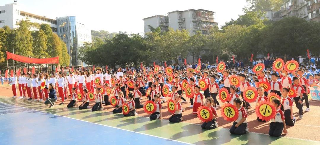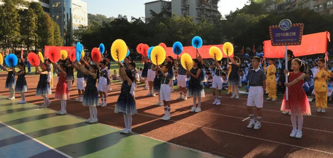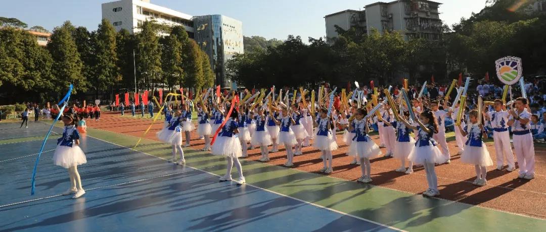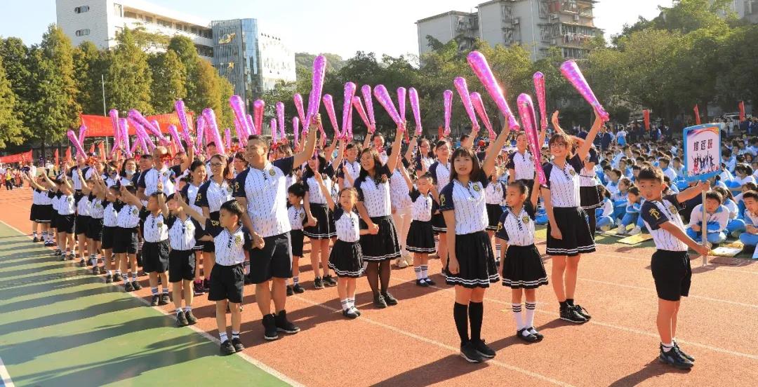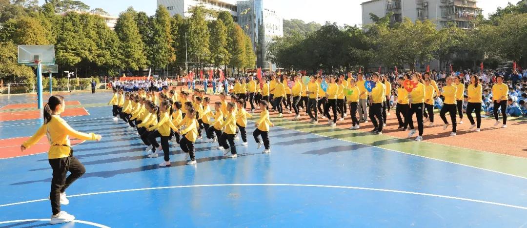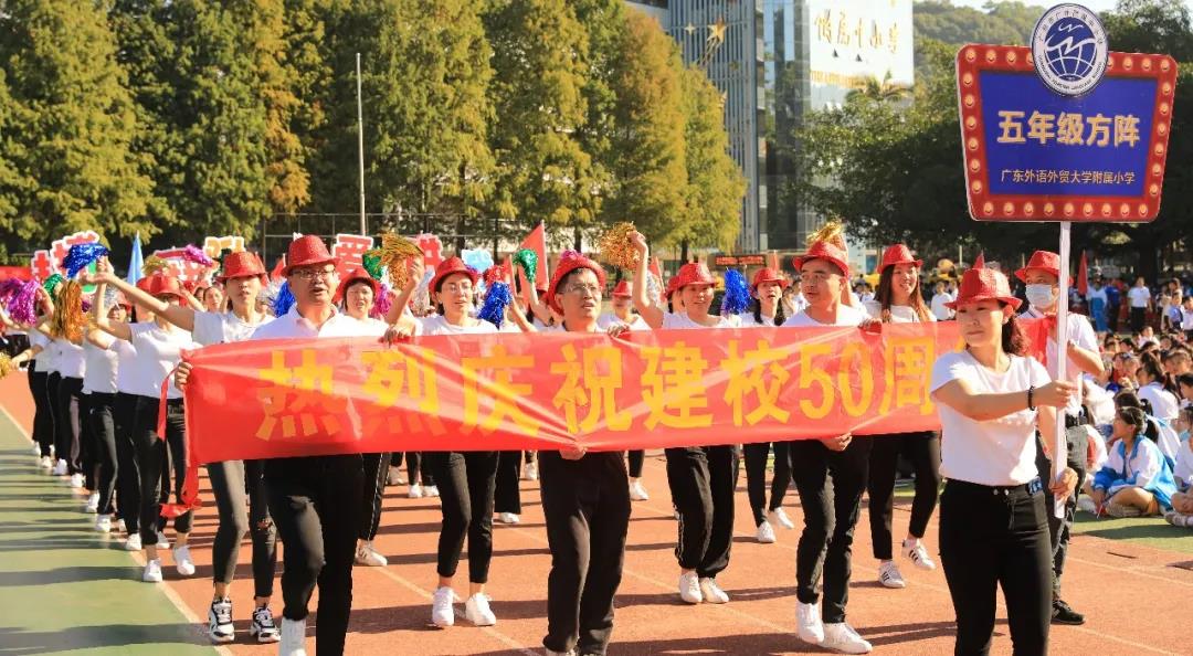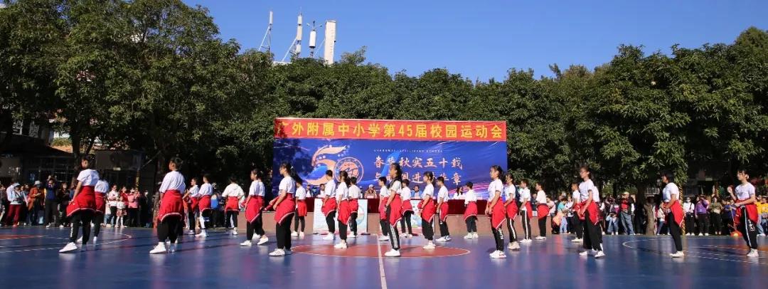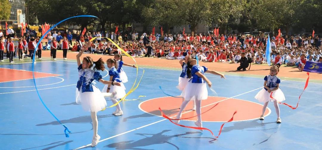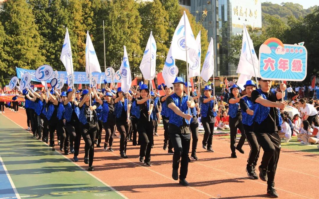 四年级组学生摆出“GWFX50”队形祝福母校50周年生日快乐,一一展示项目进课堂的体育项目,孩子们洋溢的笑脸是附小“轻负荷,高质量”理念最好的诠释。