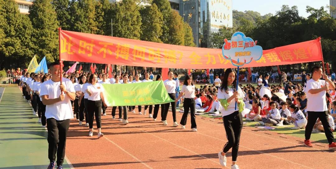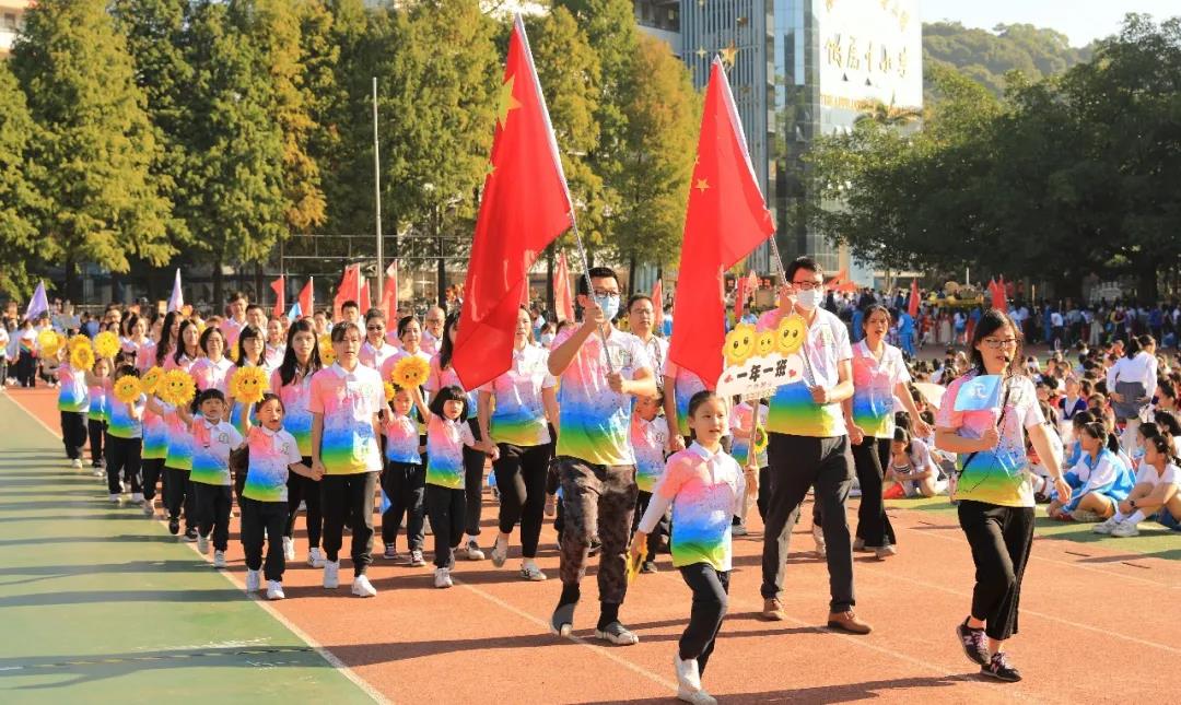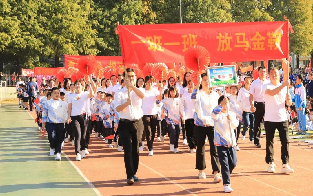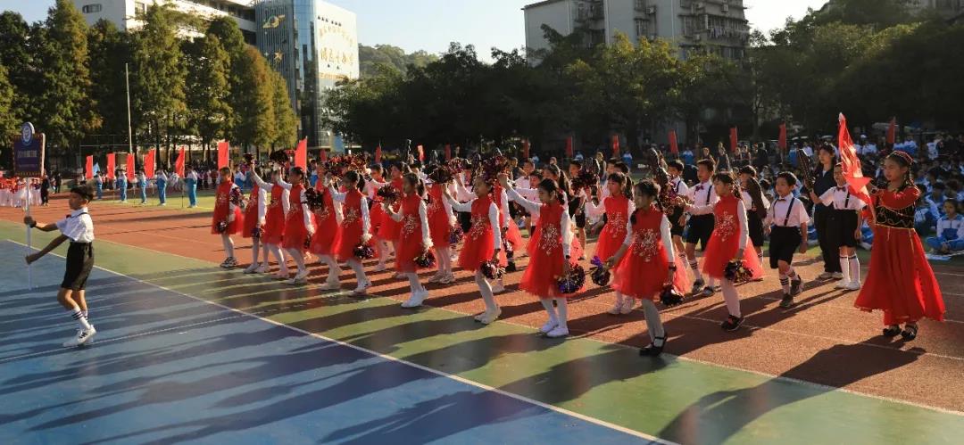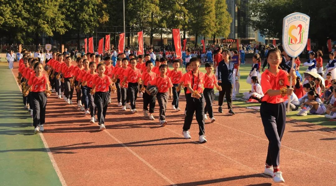 上午8时整,伴随着激昂的运动员进行曲,国旗队、校旗队、会徽吉祥物方阵、红旗方阵、鼓号队方阵等率先入场,紧接着全校2200余名师生和部分学生家长代表组成的55个方阵也依次步入会场。他们雄姿英发,昂首阔步,展示了附校人蓬勃向上的精神风貌和爱校兴校的真挚情感。