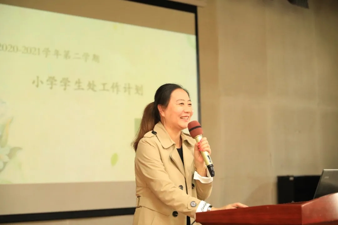 小学主管领导张慧华校长助理从师德师风,创新办学特色、完善课程建设,提升学生综合素养,提高教学质量等四个方面的内容详尽解读了小学部本学期的重点工作。