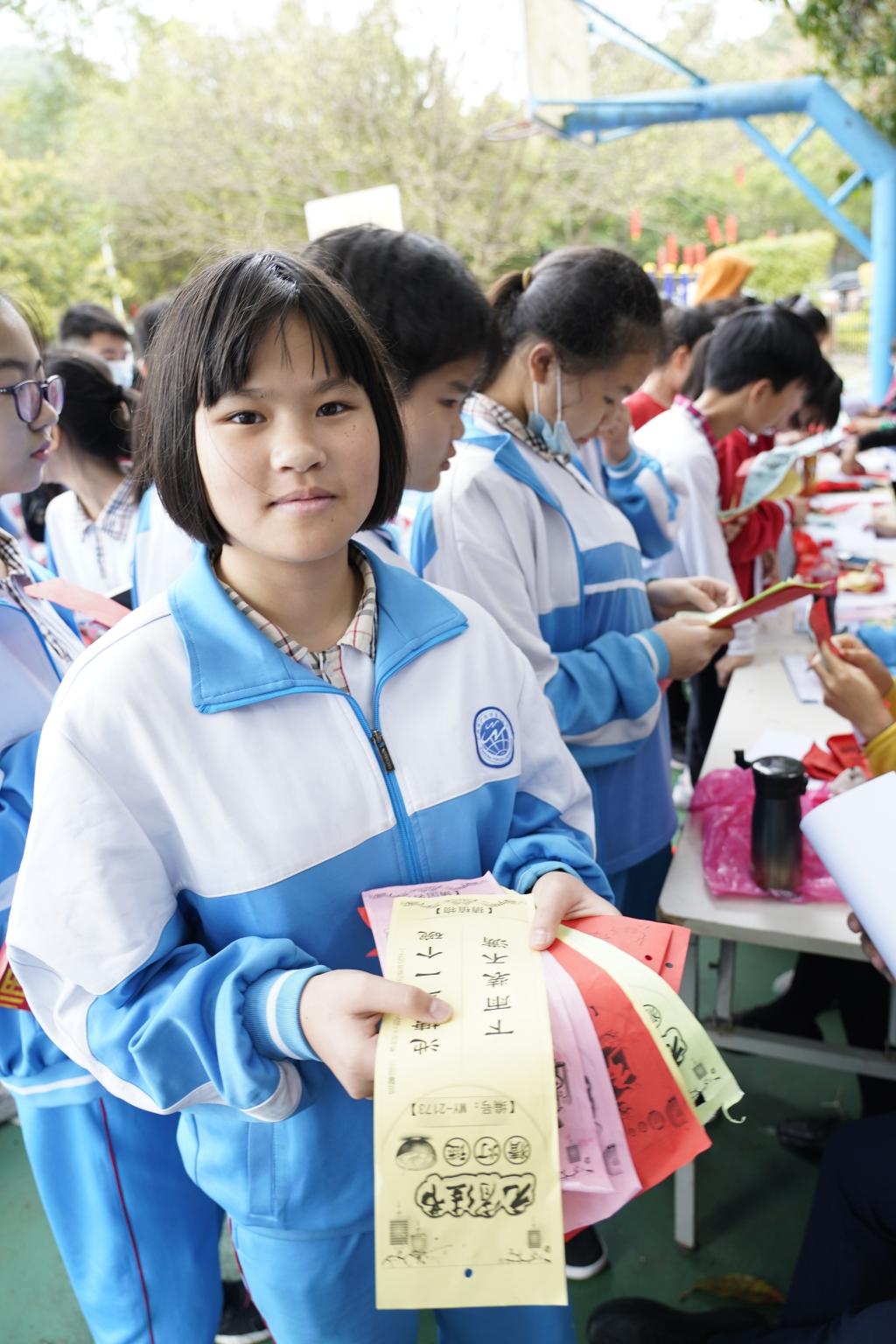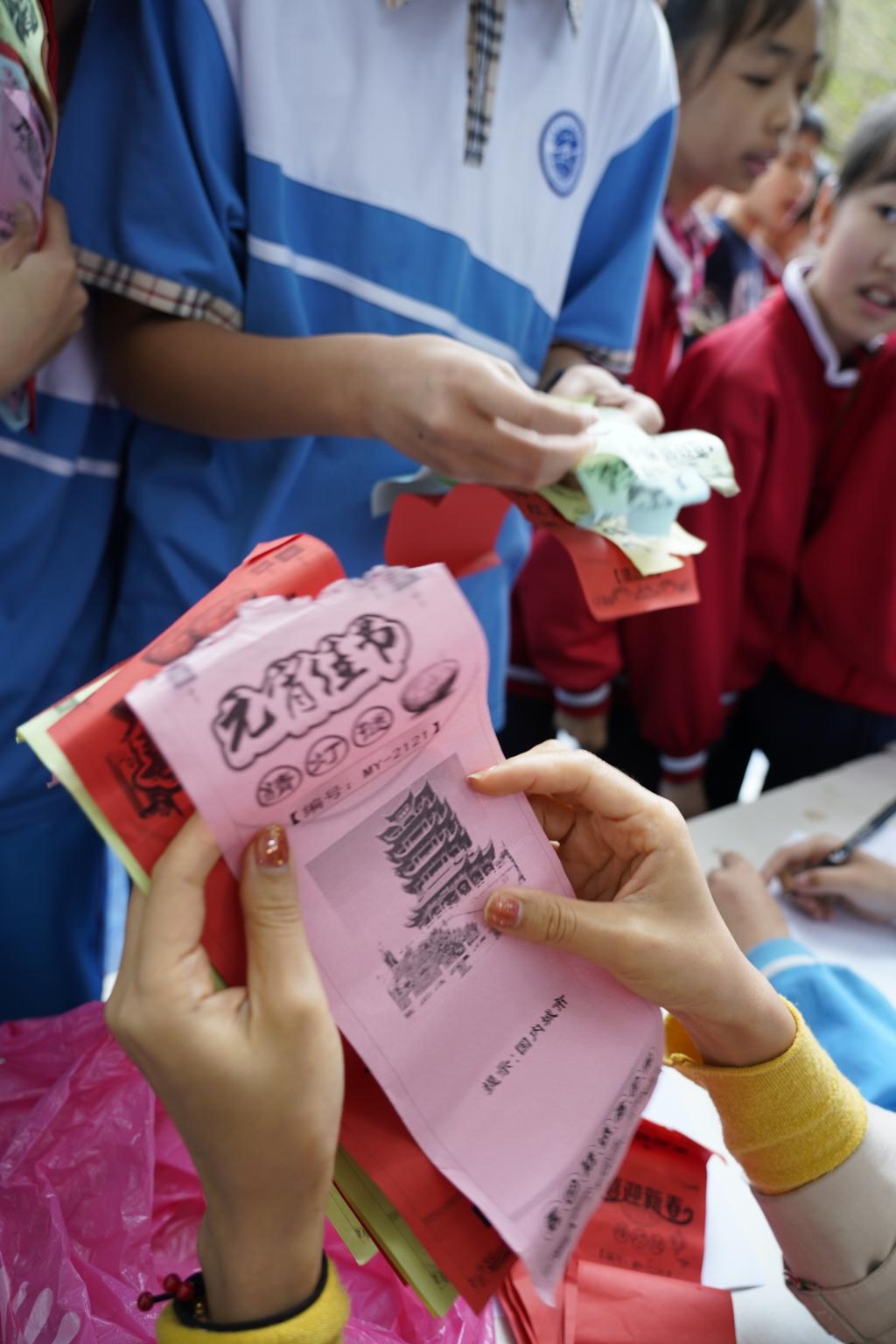 猜出灯谜之后,同学们迫不及待地排起长队到兑奖处兑奖,大家都沉浸在欢快祥和的氛围之中。