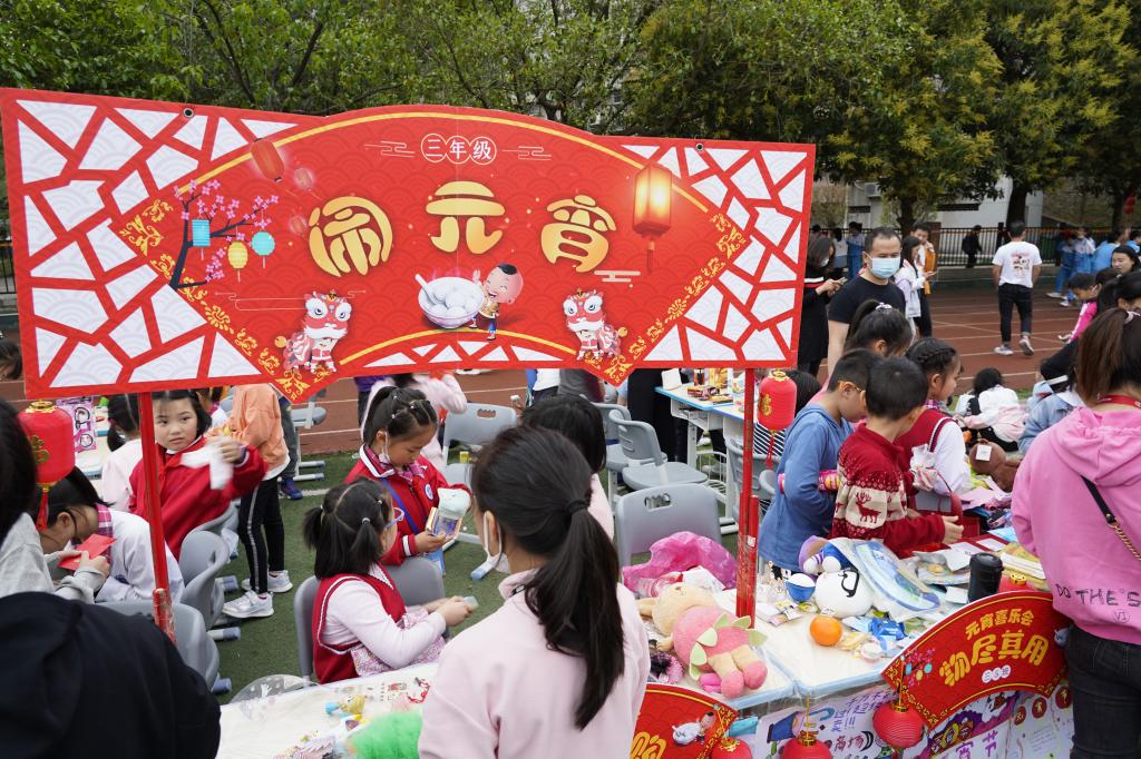 所有“商品”都是同学们自己筹备的,不仅有旧书籍、体育用品、电子音像,还有玩具玩偶、独立包装的健康食品等,每件商品都非常实惠。同学们有的自行购买,有的进行物物交换,整个校园洋溢着节日的喜悦和欢腾。