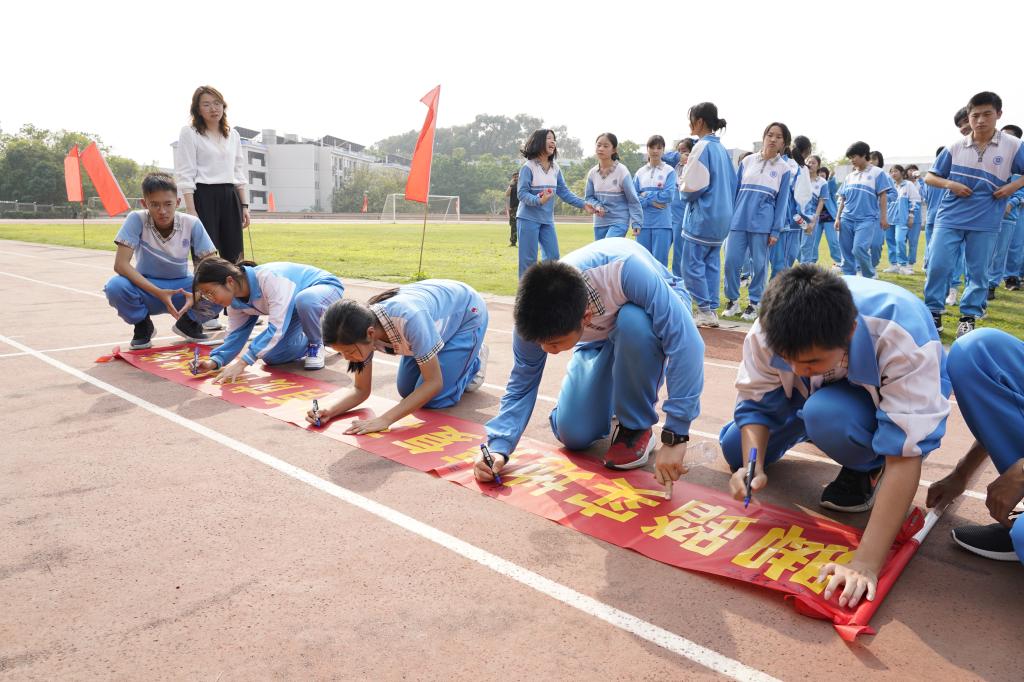 他们鼓励同学们为理想奋力拼搏,加倍珍惜最后的一百天,上好每一节课,做好每一道题,走好每一步路,为中考奋力冲刺,让青春在最后的100天中闪出耀眼的光芒。践行勤奋刻苦、严谨求实的学风,一定不会辜负老师家长的深情厚望。