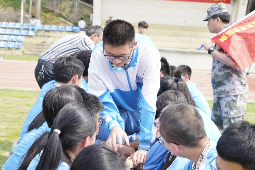 大会进行了毕业班百日冲刺拓展培训。在拓展活动中,各班在教练的指导下有序地组建班级团队,并进行团队展示。随后开展了状元桥和动力圈两个活动项目,同学们团结协作,现场气氛热烈,加油呐喊声此起彼伏。
