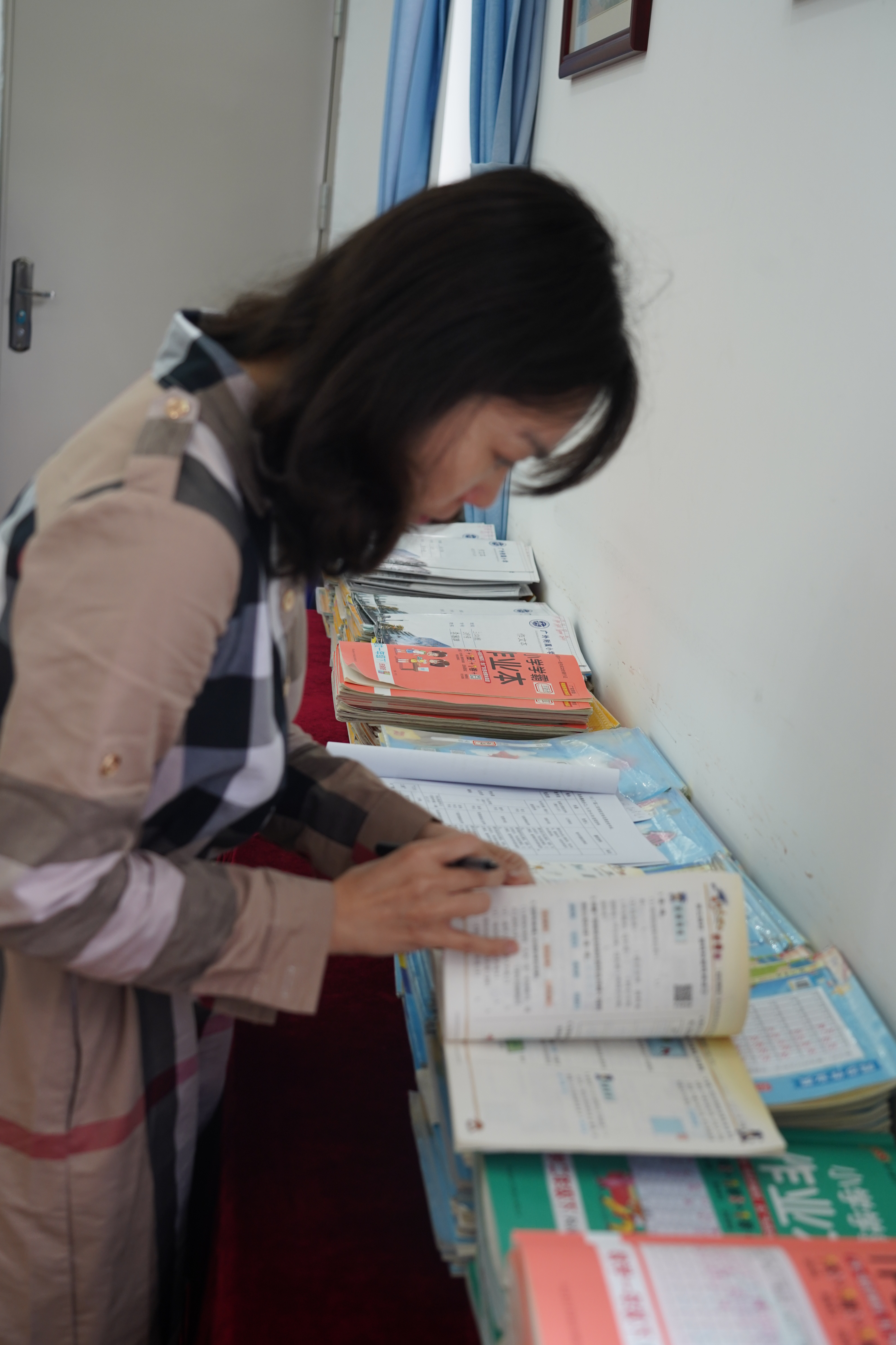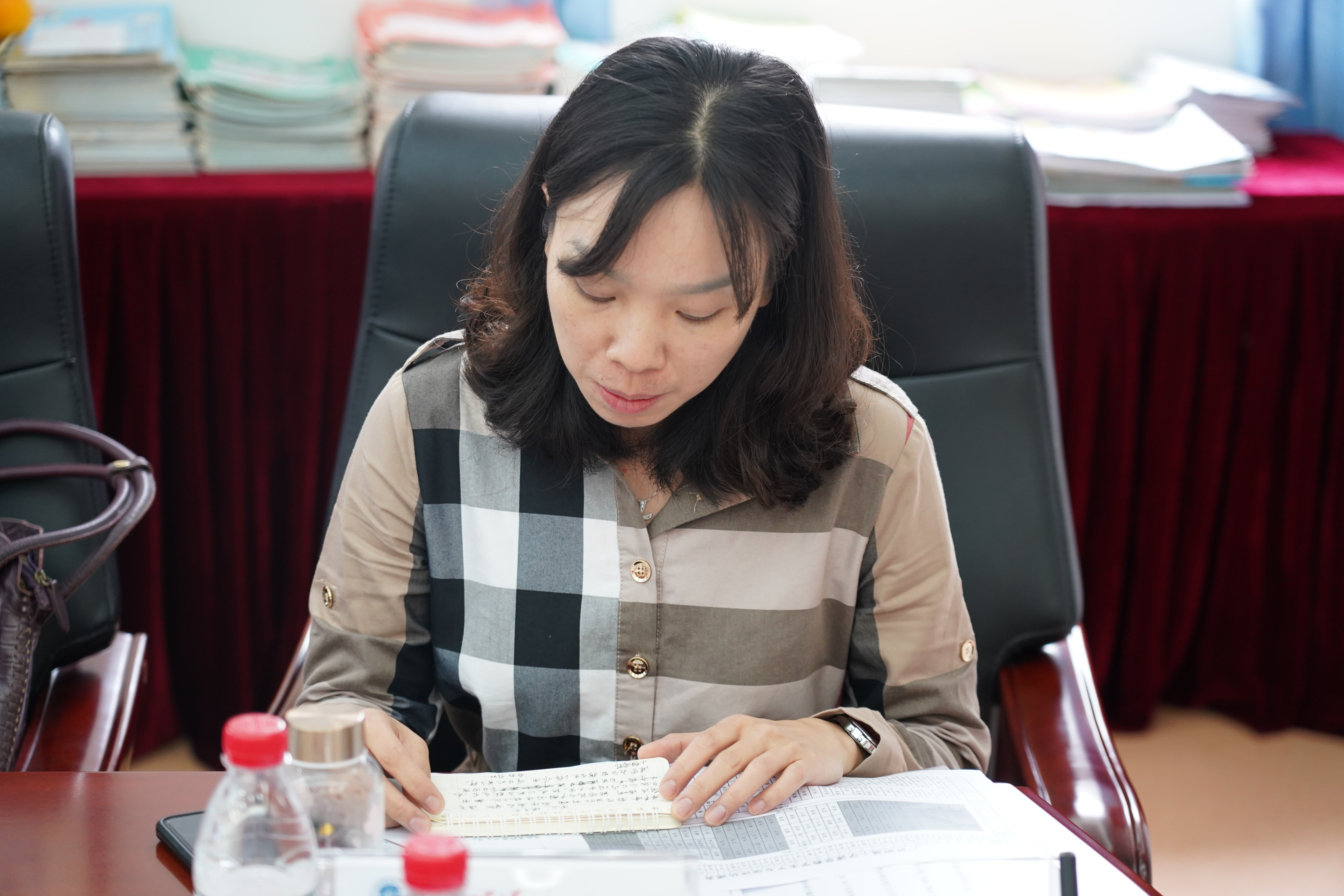 督导组一行首先到学校第一会议室仔细翻阅检查岗位大练兵、三大工程、课堂教学水平专项资料和学生作业本,对附小的教育教学工作进行全面细致检查。