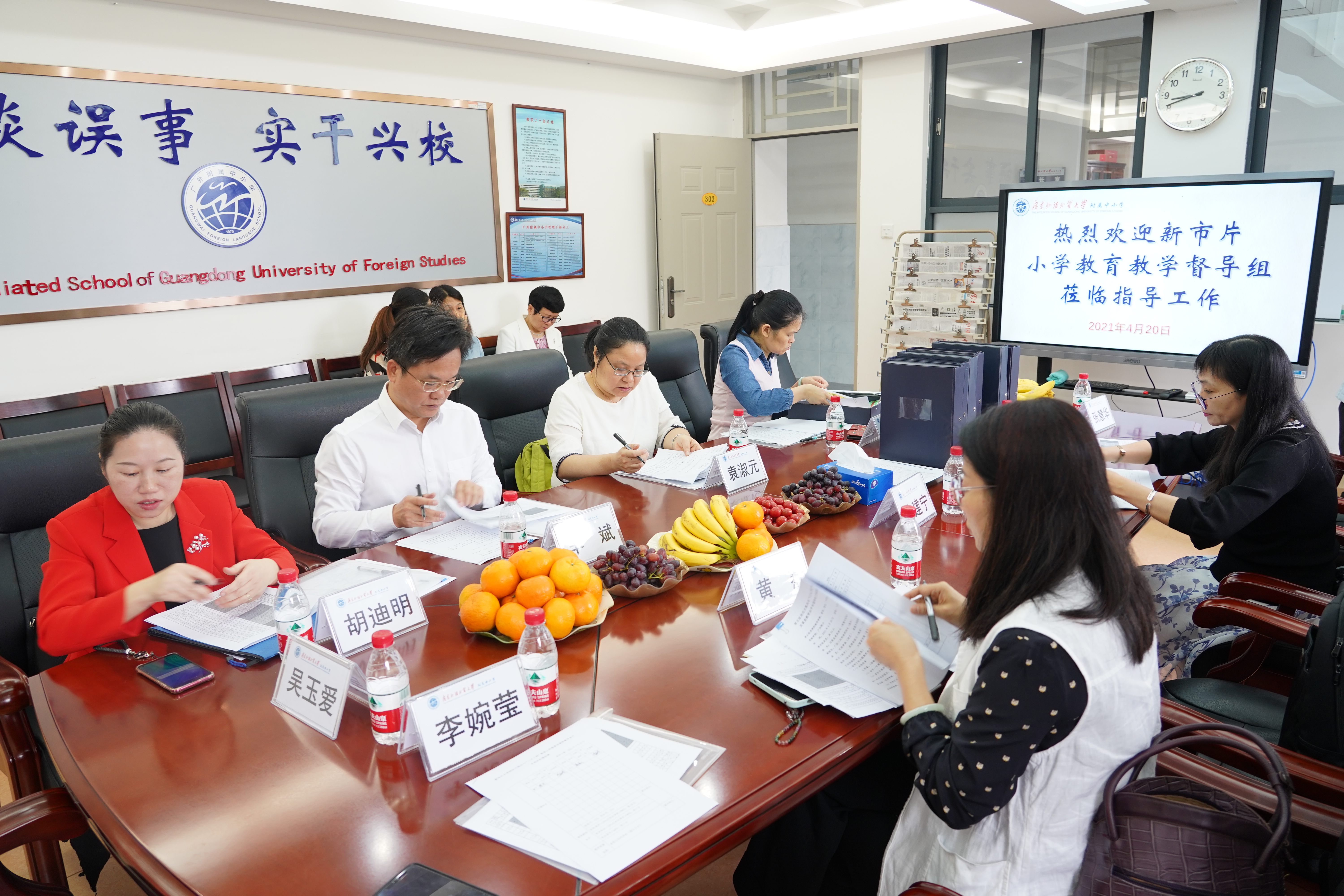 督导组由广园二实胡迪明校长带队,成员有棠溪羊斌副校长、棠景李婉莹校长、汇侨陈璇校长、棠涌袁淑元老师、广园彭慧磊老师、民航黄燕老师、机场西陈建宁老师。