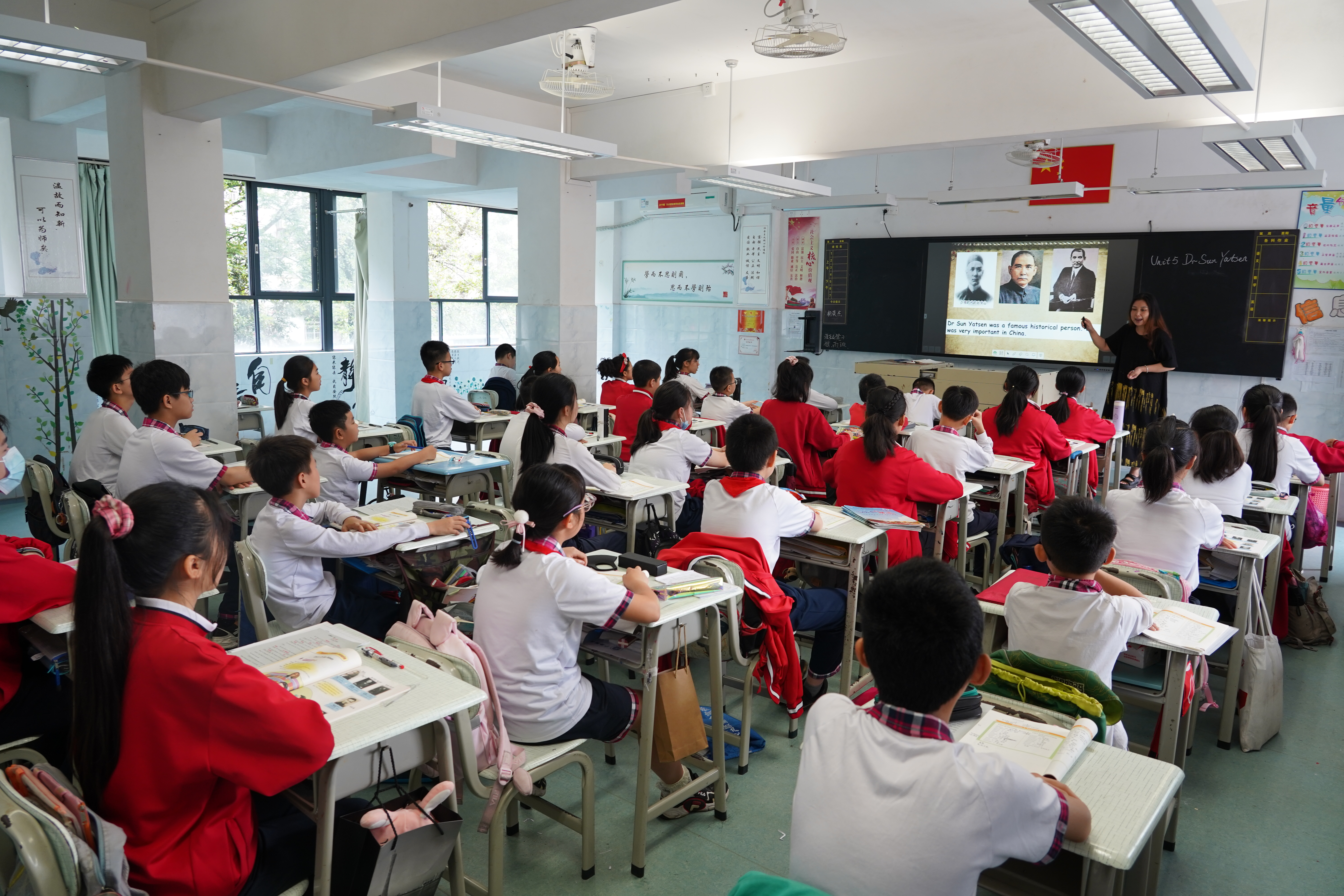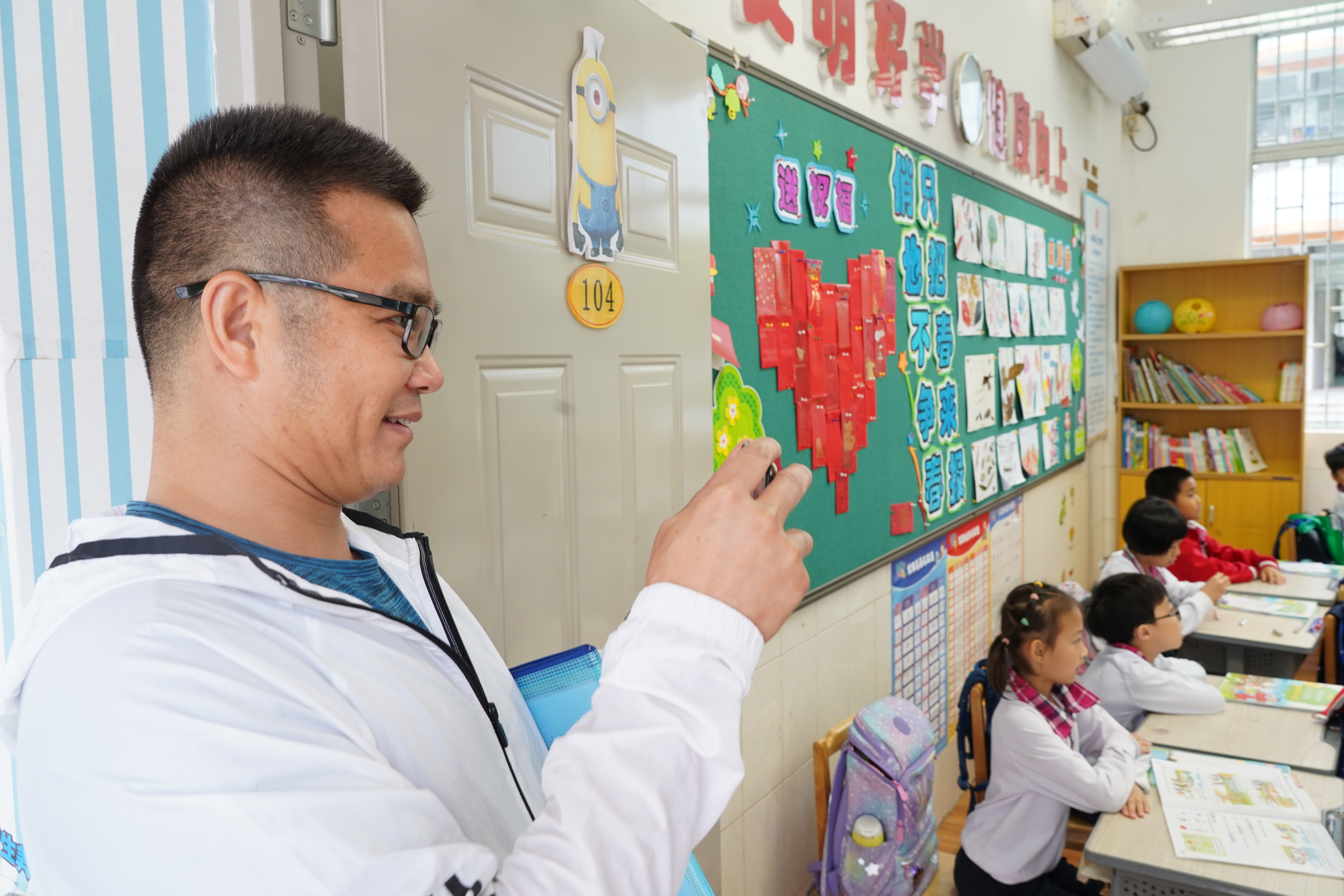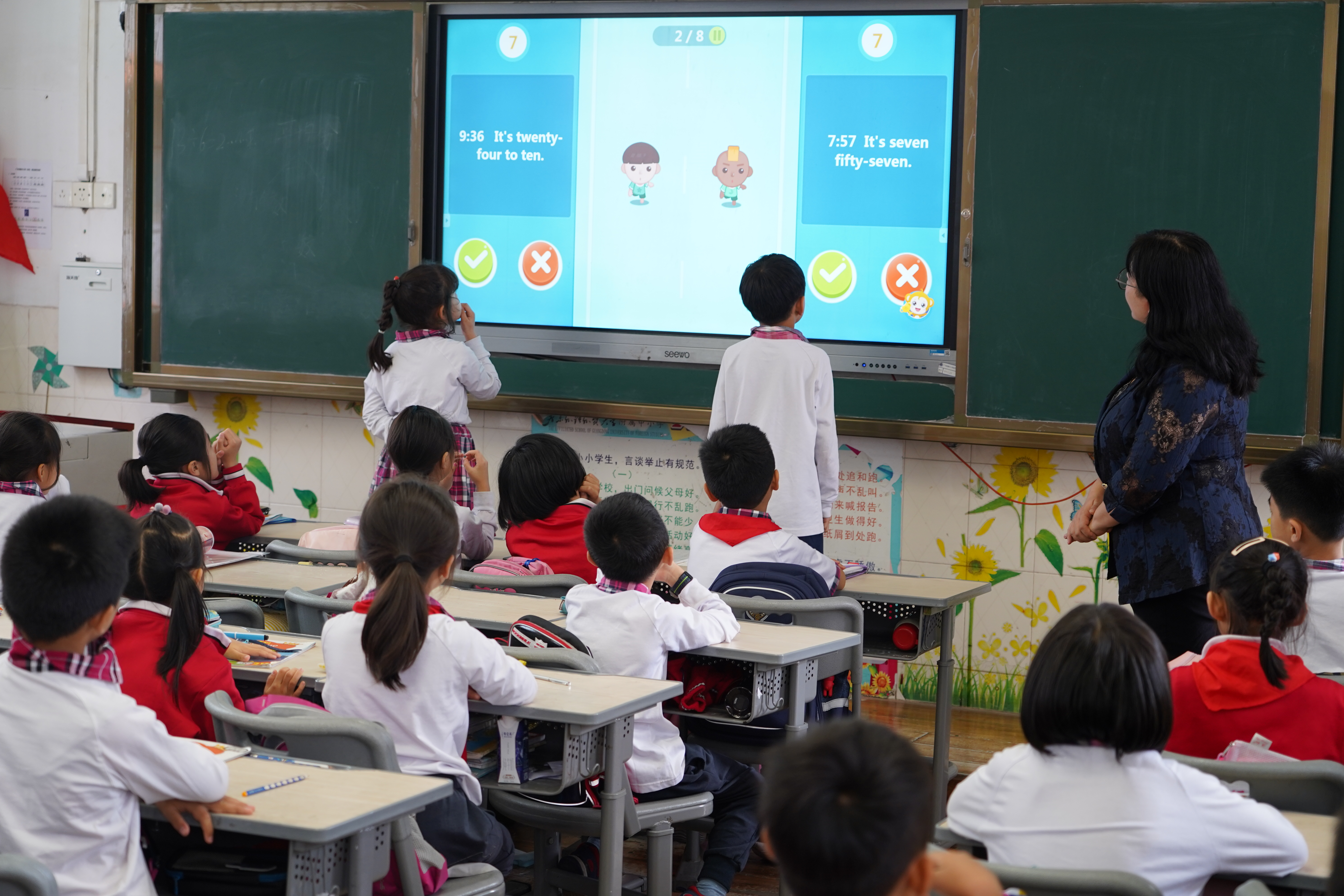 八名督导成员在我校各部门负责人的陪同下,分别在各个年级随机听取语文、数学、英语、音乐、美术、道法、科学、信息、体育等13节课程,并在课下与学生和授课教师亲切交流。