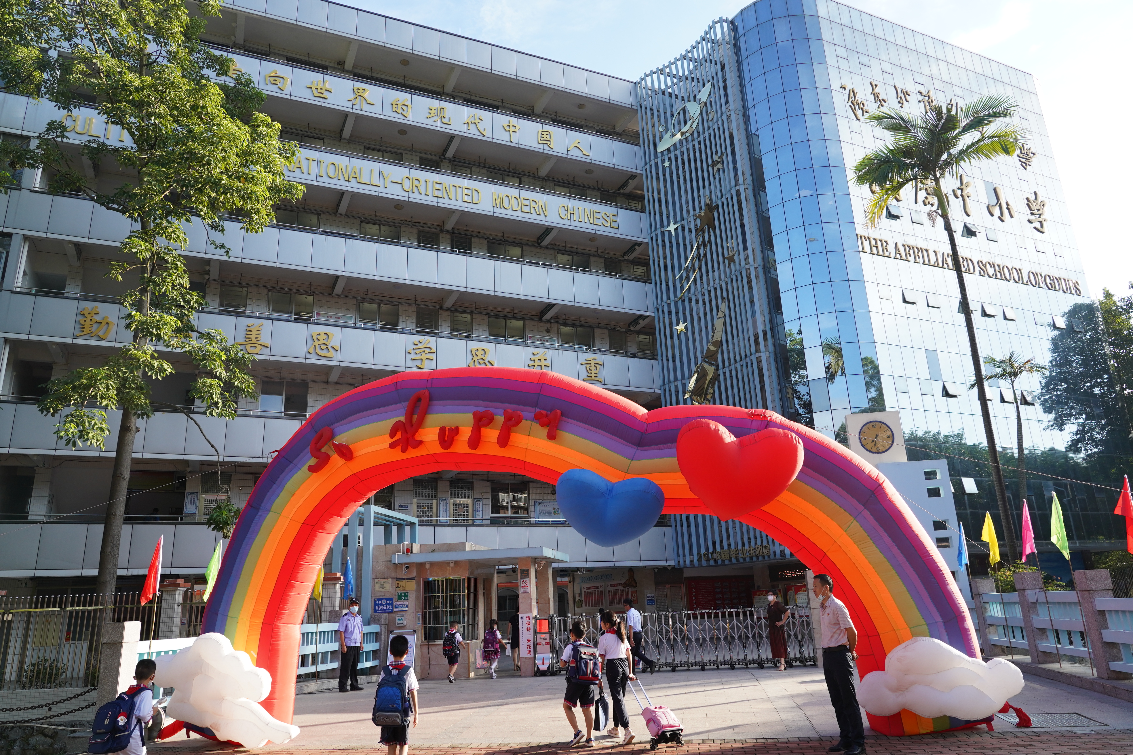 在这金秋送爽,硕果飘香的季节里,安静了一个暑假的校园又热闹起来。9月1日是2021-2022学年第一学期开学的第一天,面貌一新的广外附校迎来了阔别一月余的莘莘学子。他们迈着欢快的脚步,朝气蓬勃地回到了校园大家庭的怀抱。